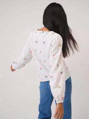 Every wardrobe needs a white blouse. Featuring a collar and brown button front, you’ll love the relaxed fit, falling from a bohemian-inspired yoke. The exaggerated, shirred cuffs are an extra touch.