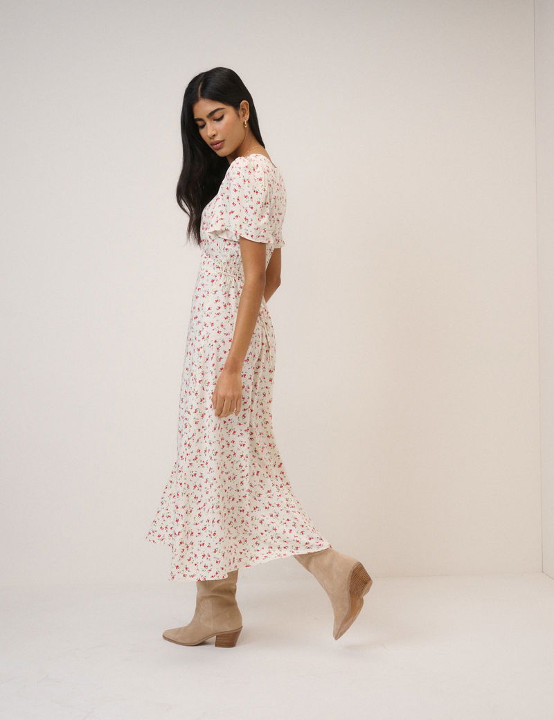 White Floral Atlas Midi Dress