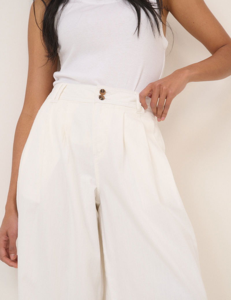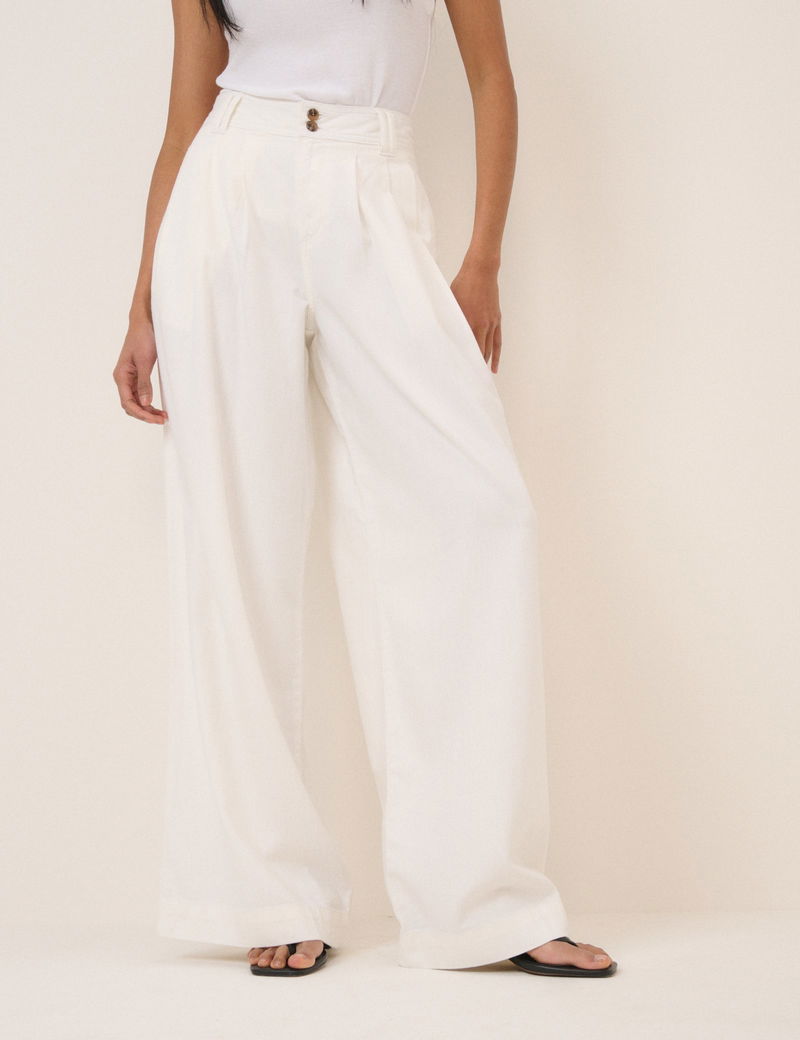 White Pleated Wide Leg Trousers