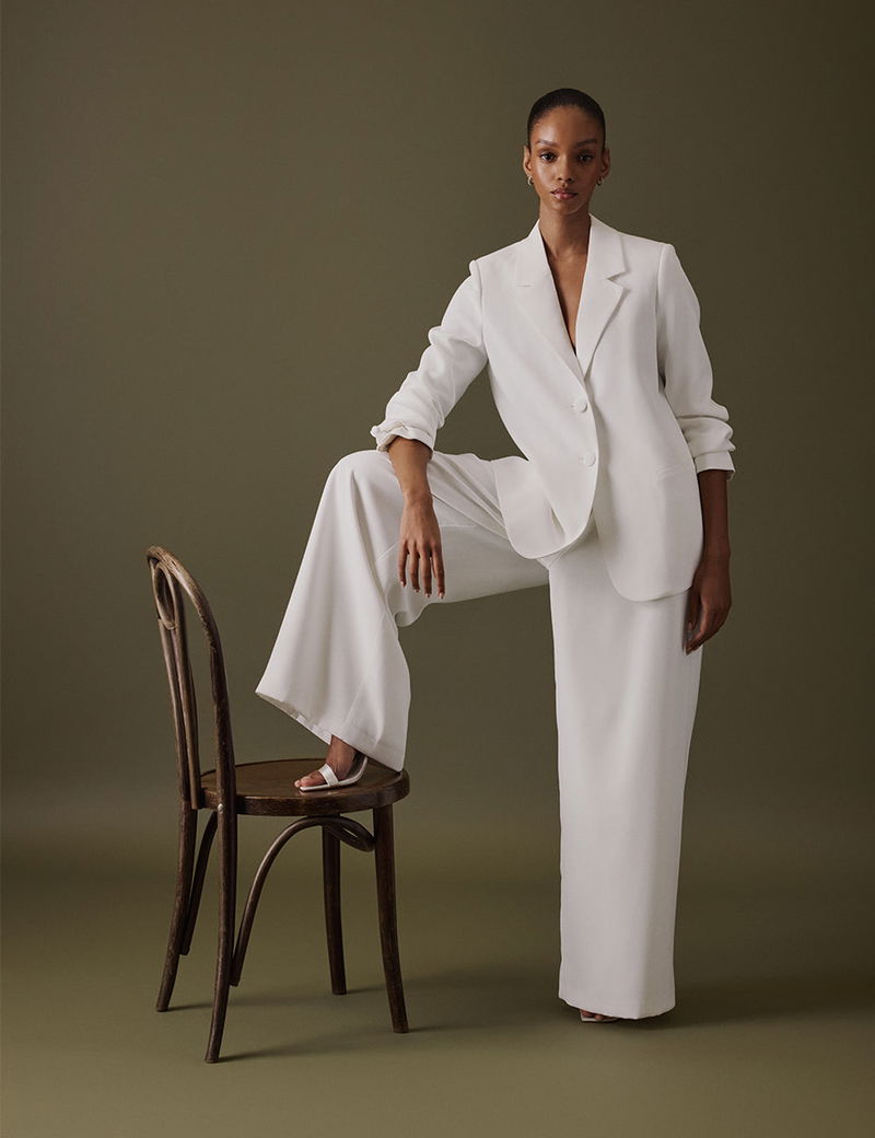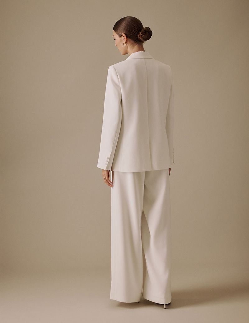 These white trousers feature a fitted high rise and concealed hook-and-bar fastening. The front pleats fall into a relaxed wide leg.