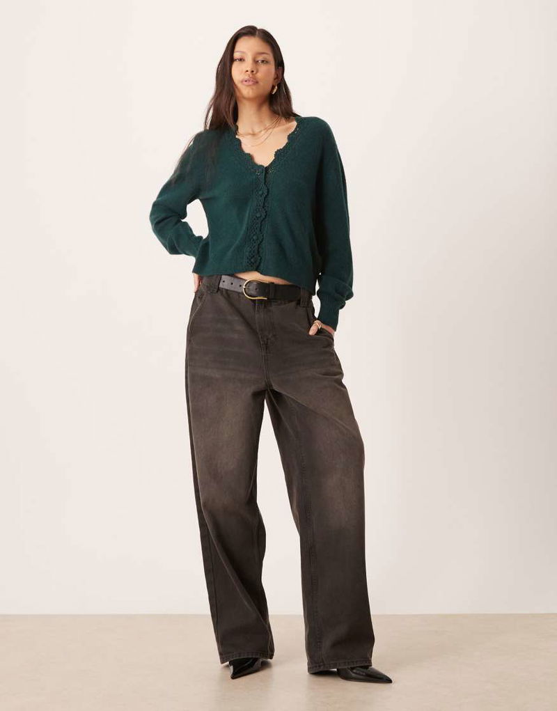 Wool Scalloped Crochet Edge Cardigan In Green
