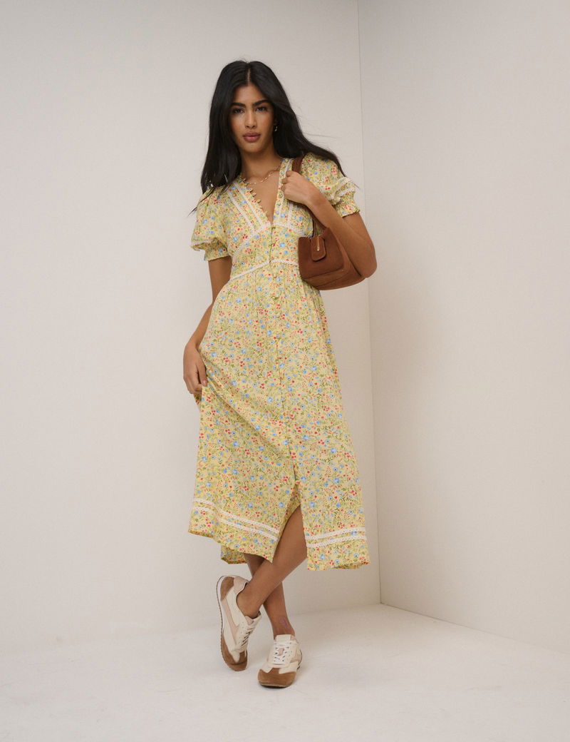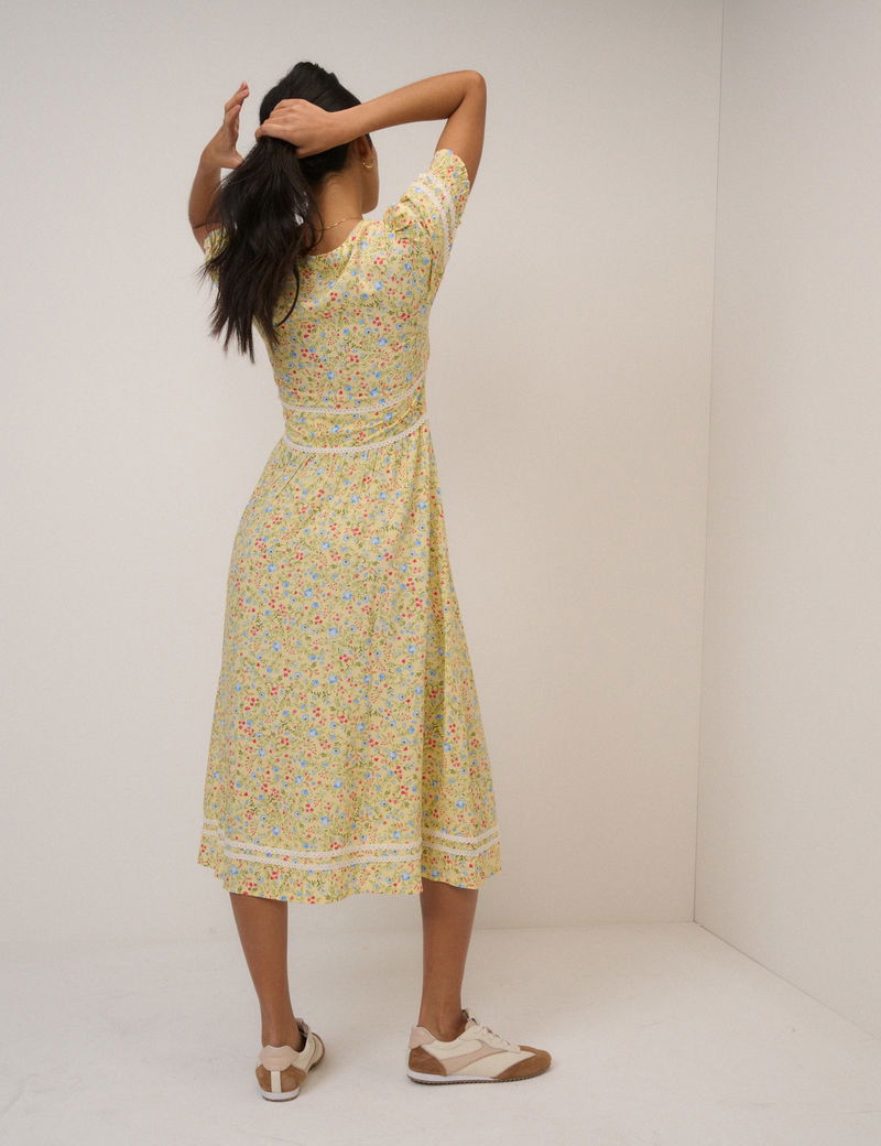 Yellow Ditsy Floral Saffy Midi Tea Dress