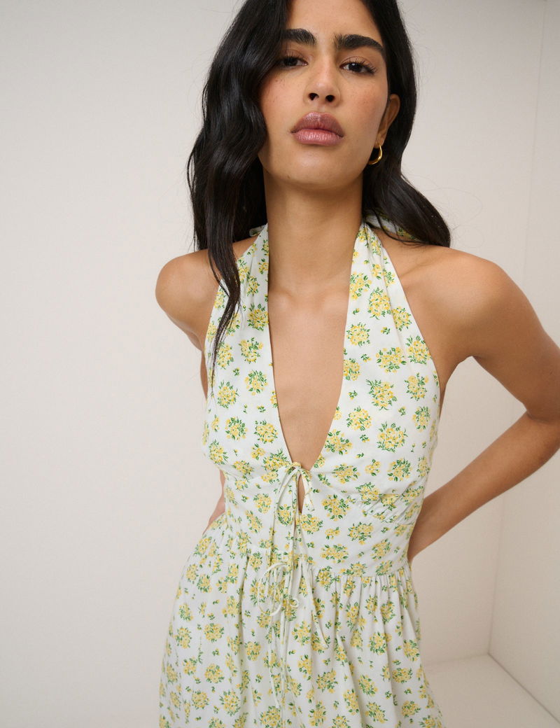 Yellow Floral Halter Neck Lilijana Midi Dress