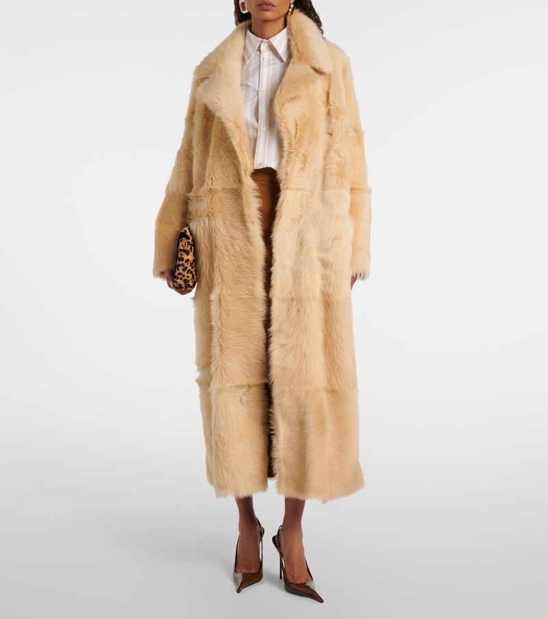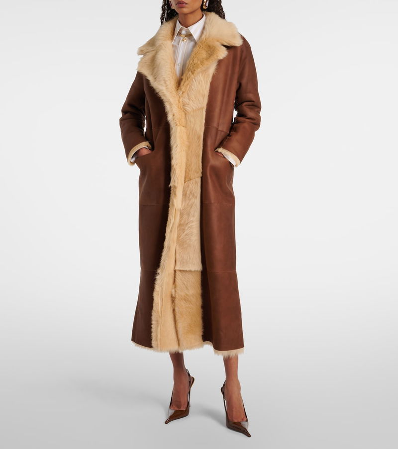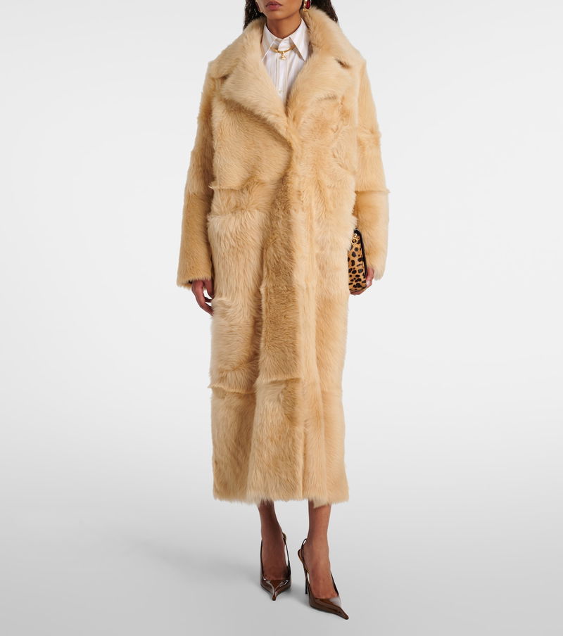 Dakota Shearling-Trimmed Leather Wrap Coat