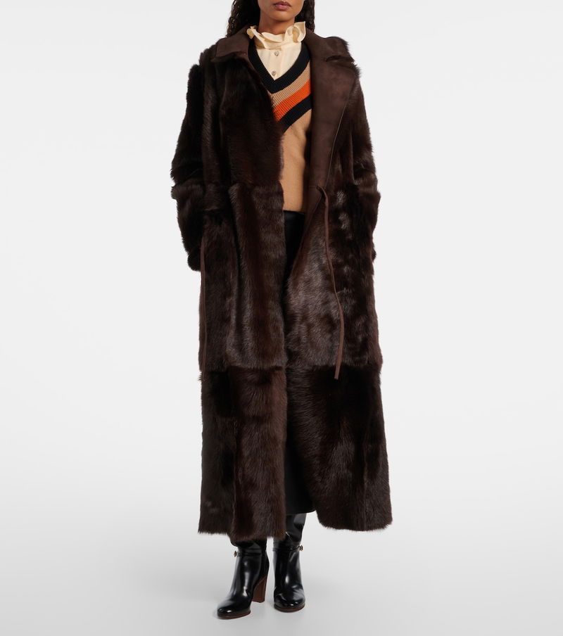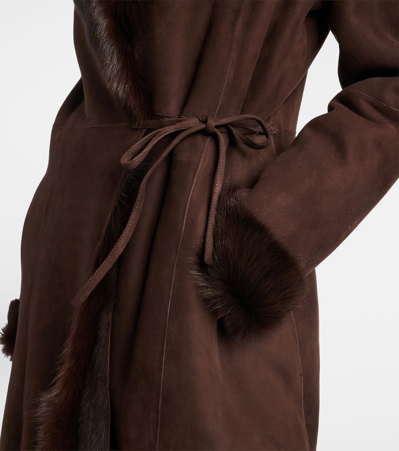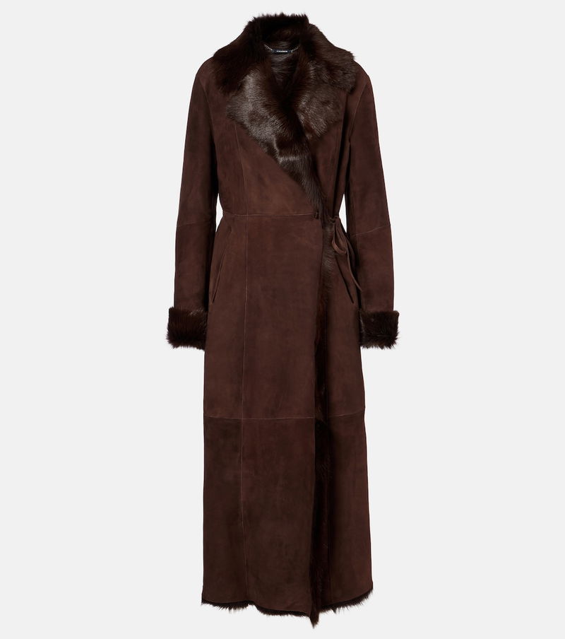 Dakota Shearling-Trimmed Leather Wrap Coat