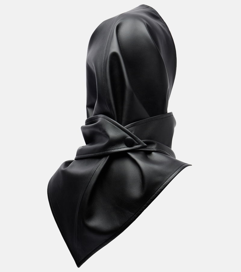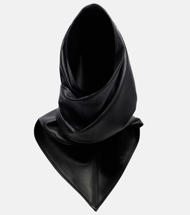 Exude empowered elegance in this hood from Nour Hammour. The draped piece is crafted from supple leather and boasts snap-buttoned closures.