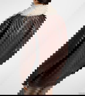 Dakota Shearling-Trimmed Leather Wrap Coat