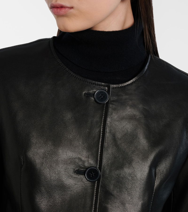 Nour Hammour's approach to leatherworking brings a new, contemporary edge to outerwear favorites. The Maud jacket is expertly made from lamb leather and finished with a buttoned front.