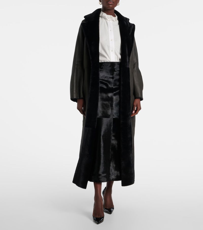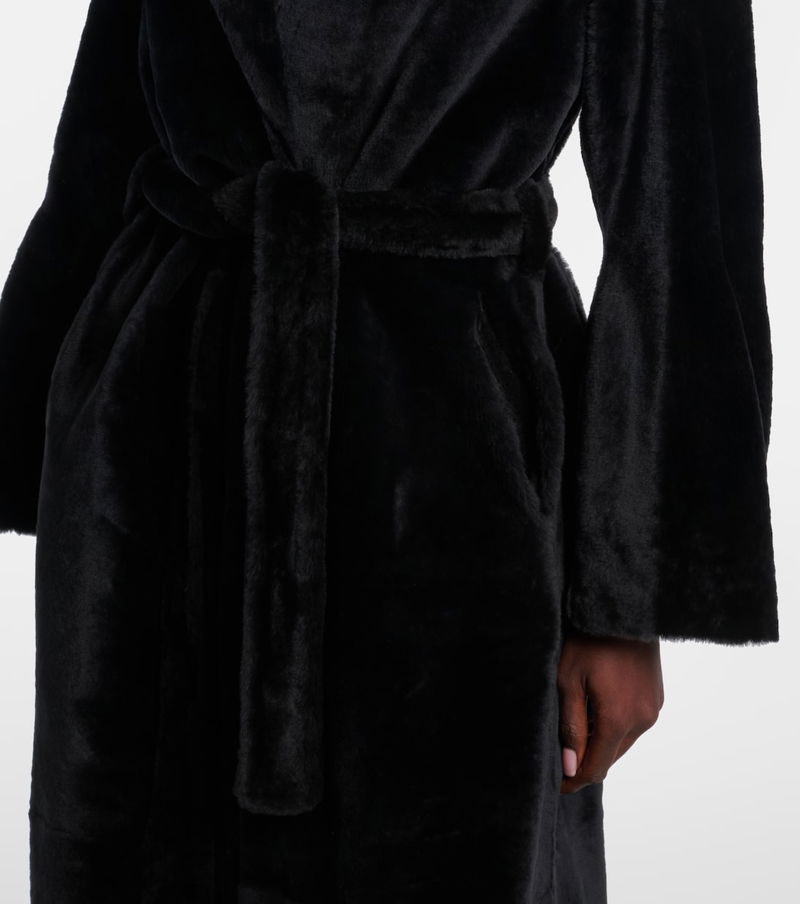 Dakota Shearling-Trimmed Leather Wrap Coat