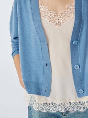 Knitted in the softest cotton-cashmere blend, this loose silhouette with an open collar neckline, is good layered over a tee shirt, or worn alone. Style this relaxed fit knit, with everything from denim to neutral tailoring and even your most comfortable lounge wear.
