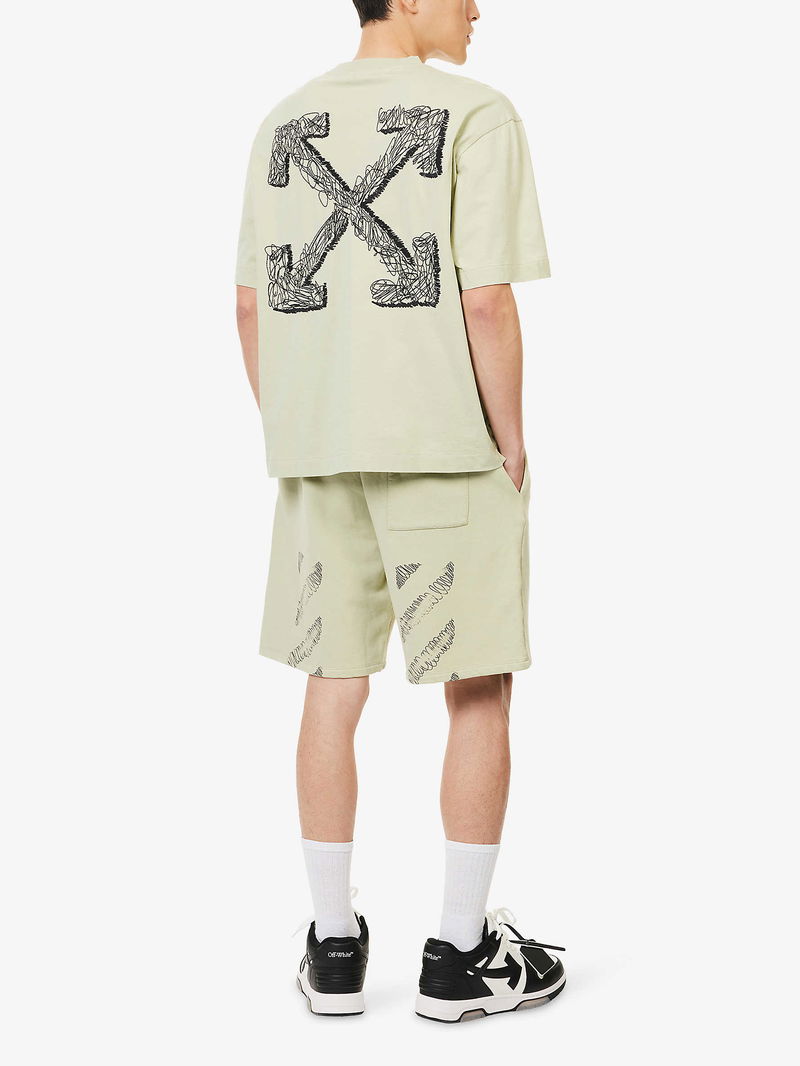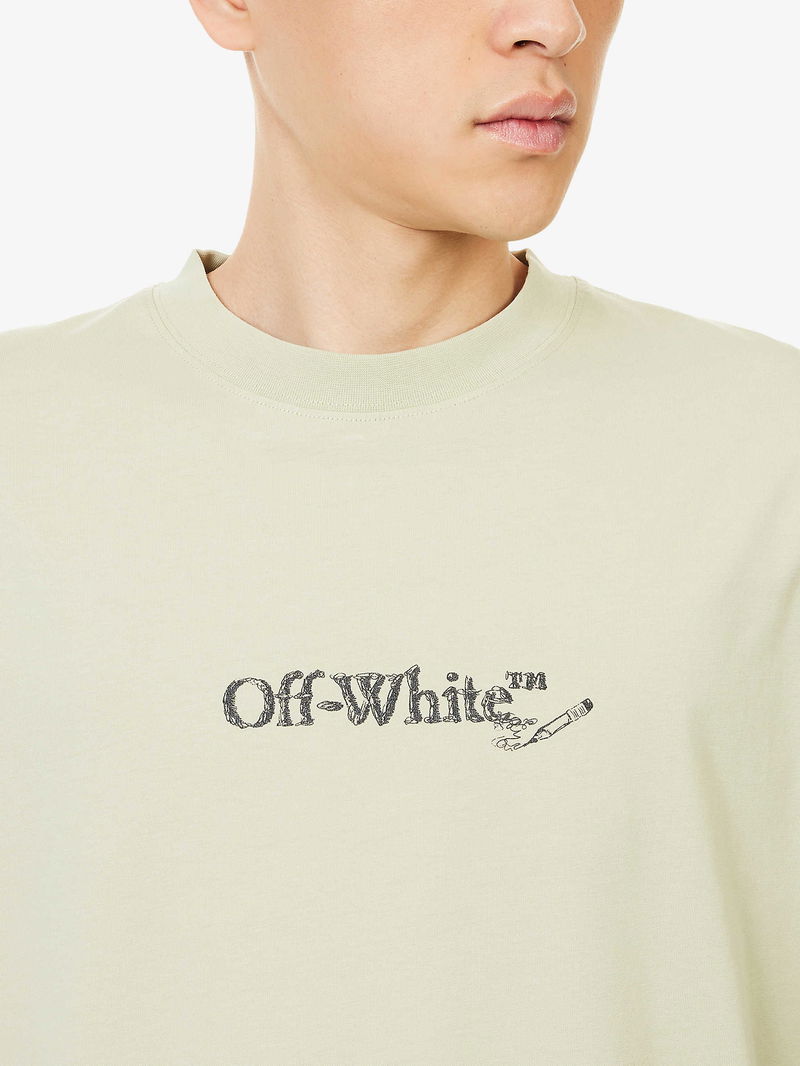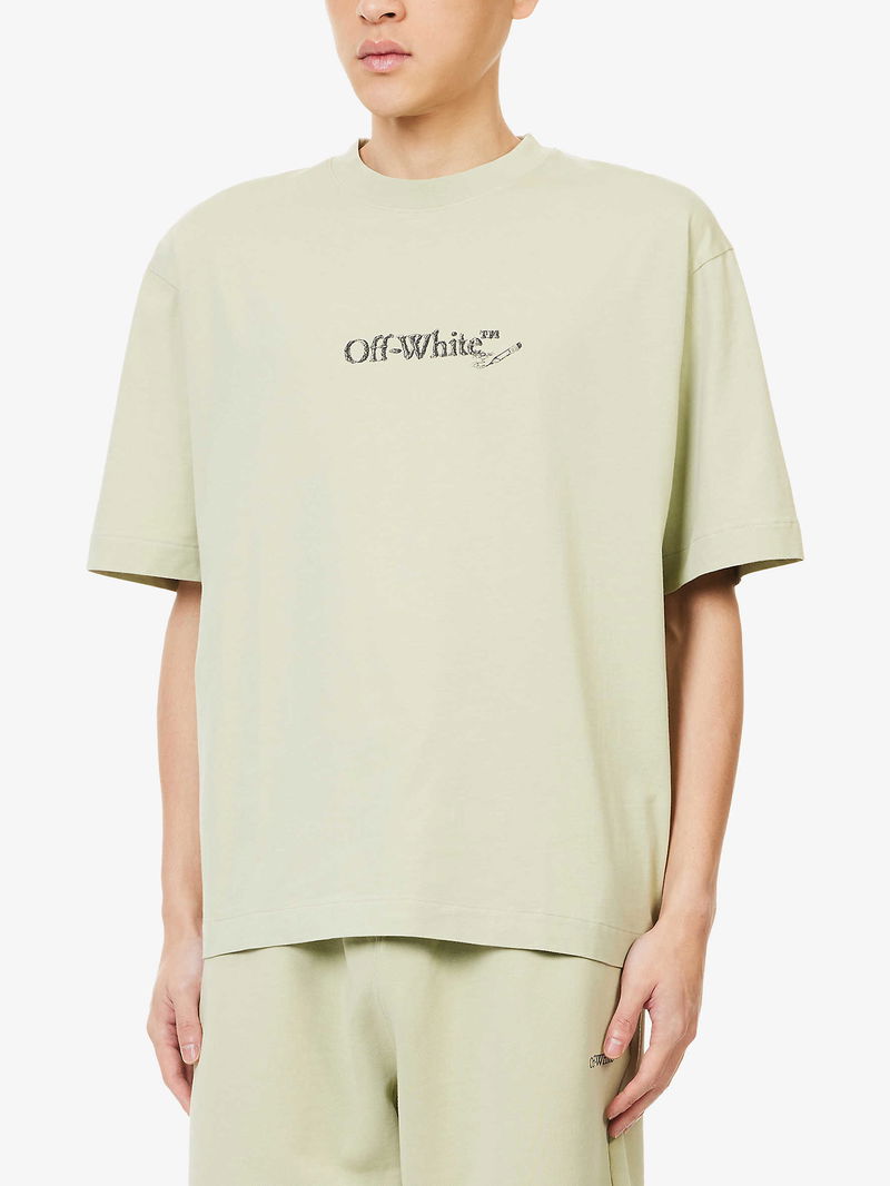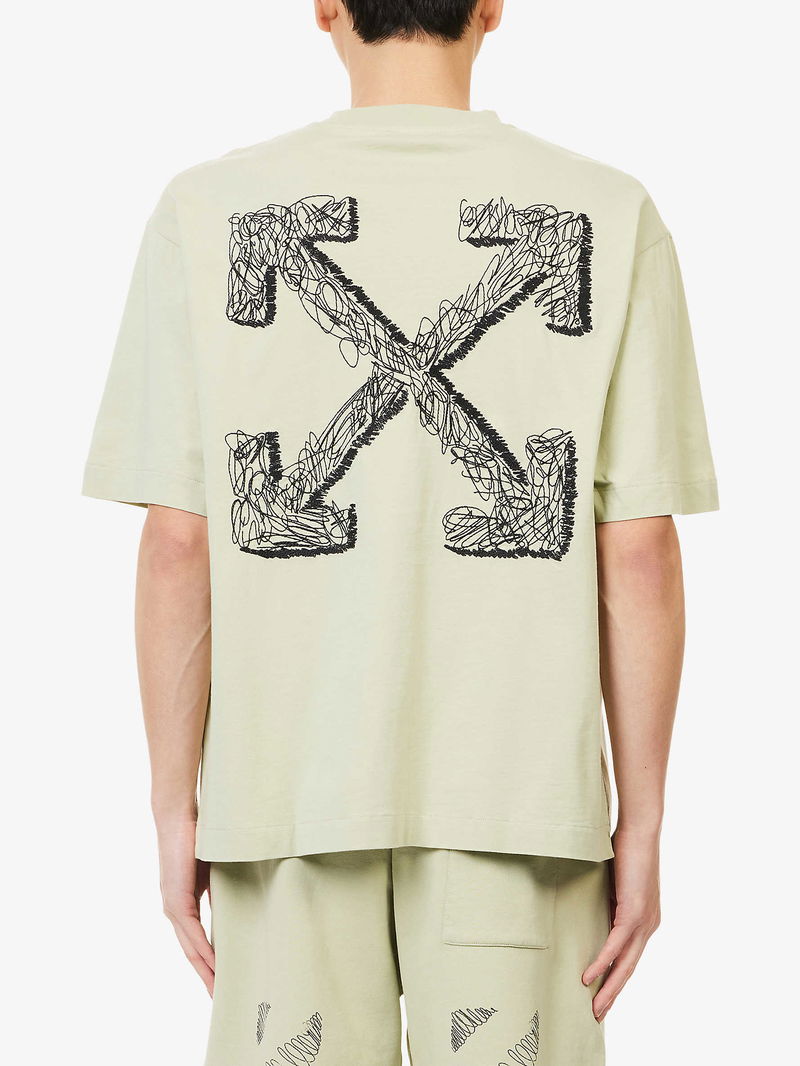 Off-White c/o Virgil Abloh cotton t-shirt. Crewneck, short sleeves, brand text print at front, embroidered scribble detailing at back, , straight hem.