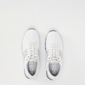 Low top, round closed toe, perforated toebox, padded collars, arrow patch and text print at sides, tonal laces, detachable brand tag at front, debossed branding at back