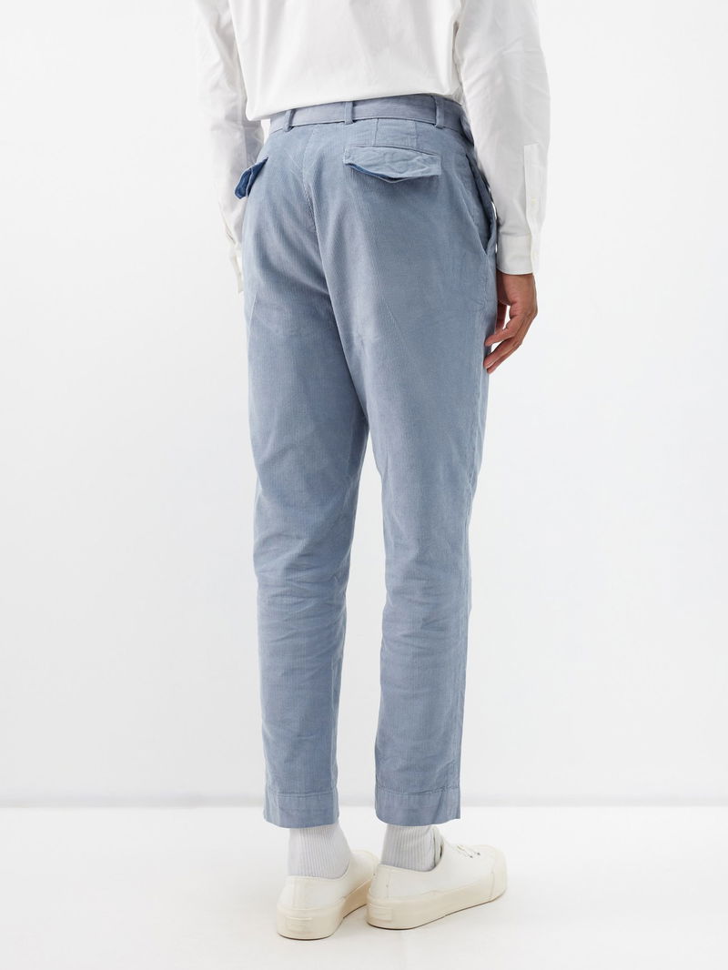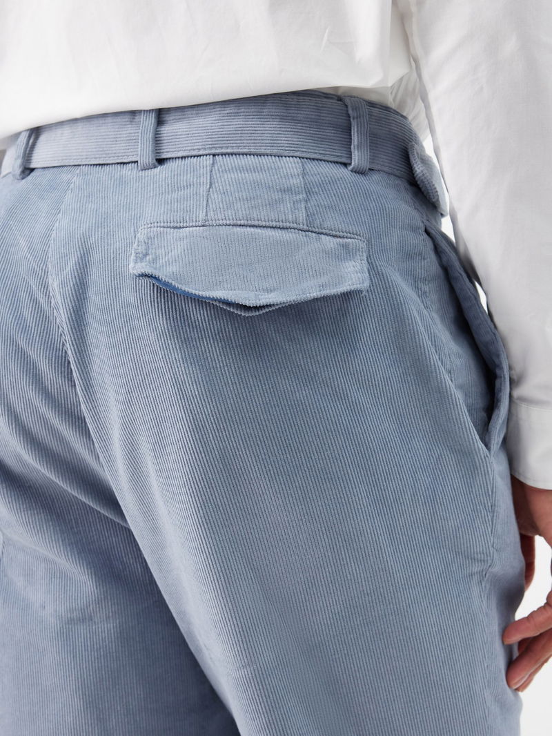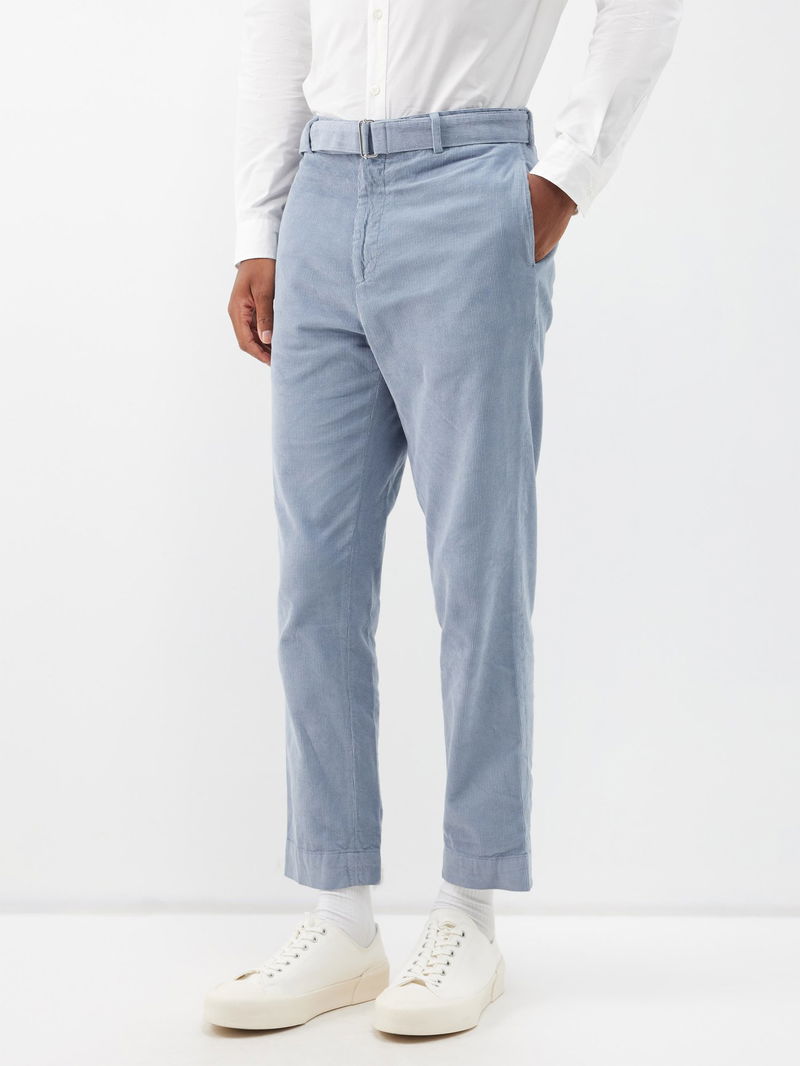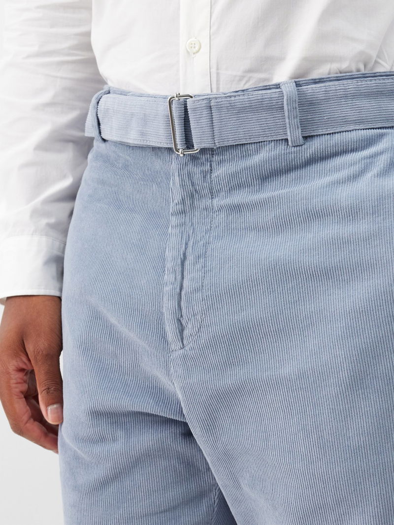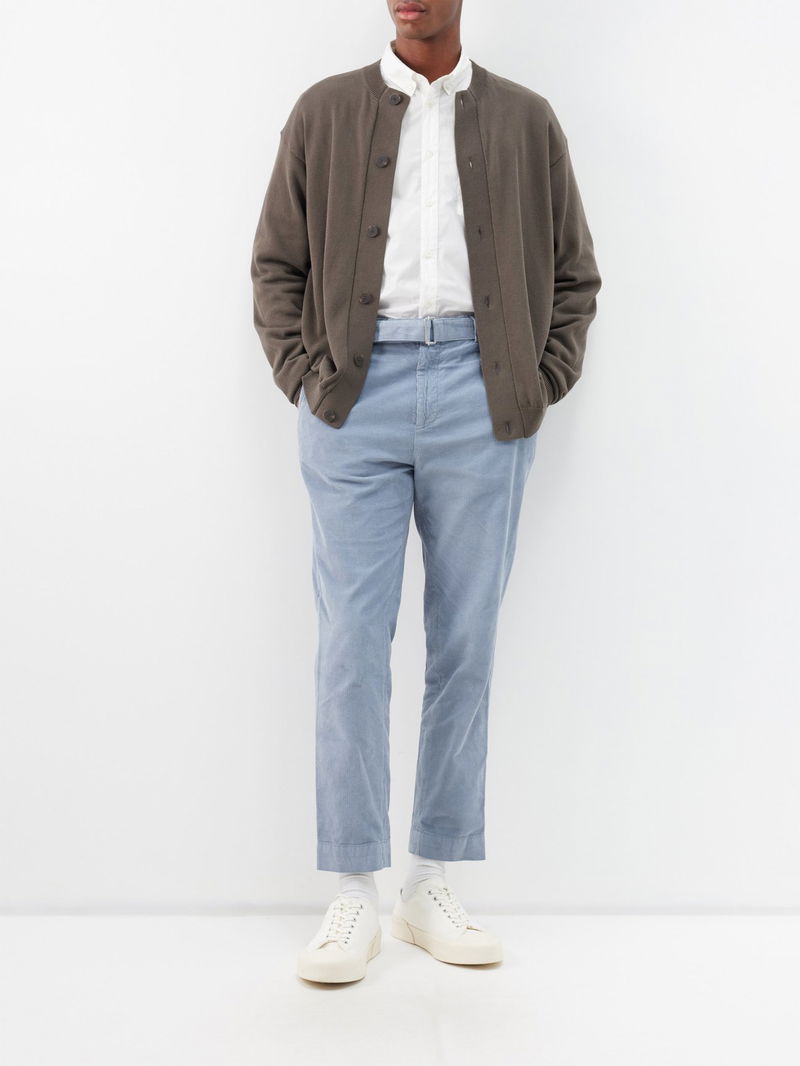 Utilitarian ease guides Officine Générale’s vision for these light blue Owen trousers, tailored from garment-dyed cotton corduroy with a detachable belt and back flap pockets.