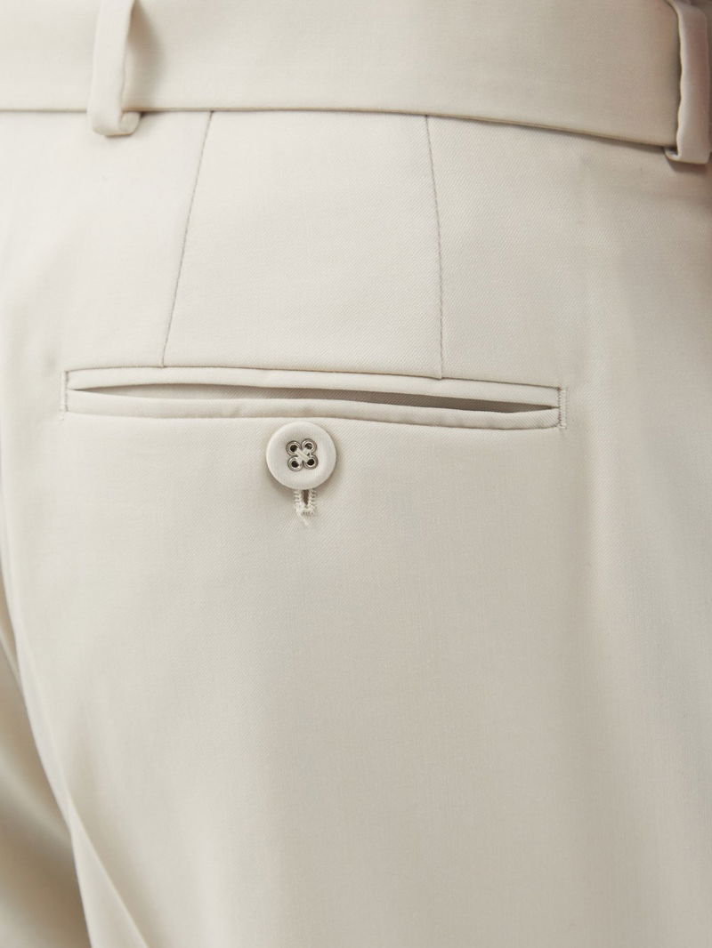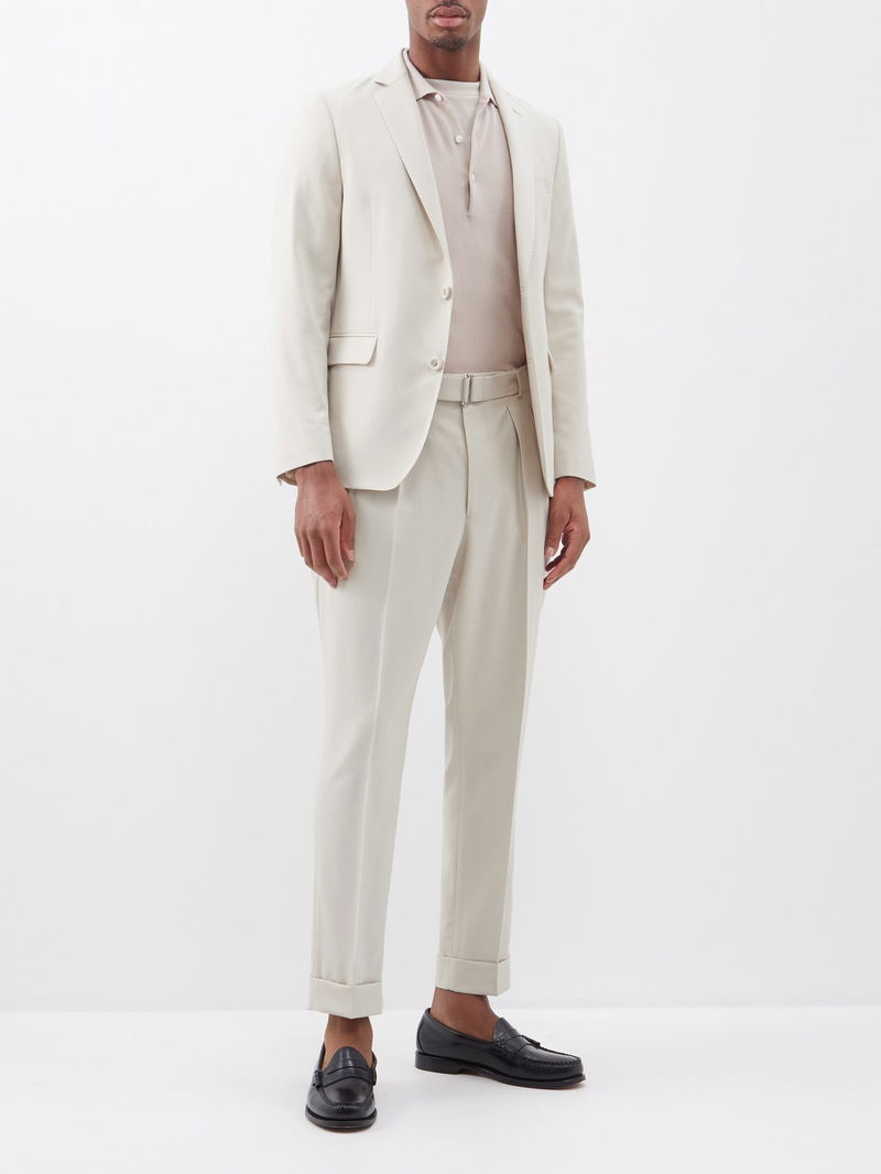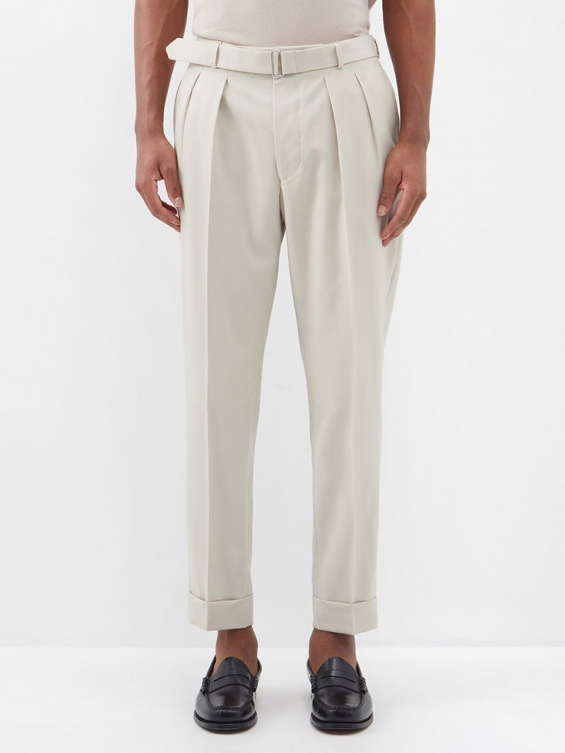 Officine Générale's cream Pierre trousers are precision tailored in Portugal from virgin wool with a pleated front and turned up hems.