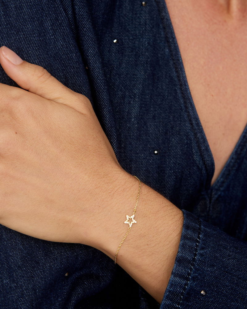 Akira Cubic Zirconia Star Charm Gold Plated Chain Bracelet