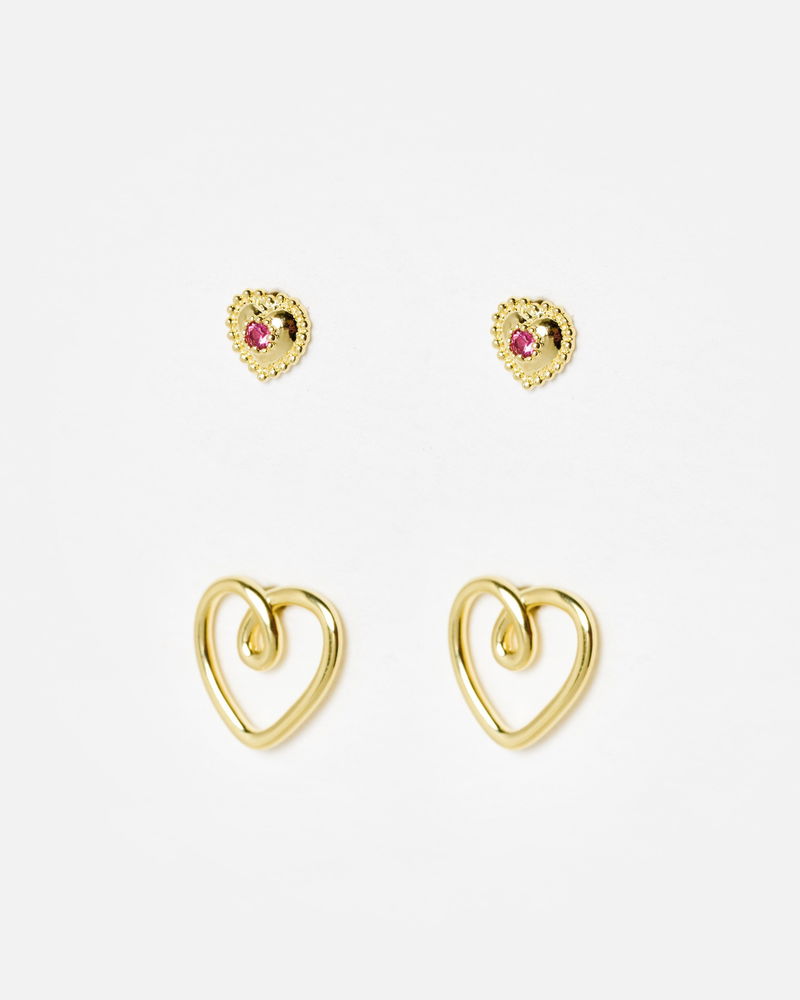 Amia Double Heart Tourmaline Stud Earring Set Of Four