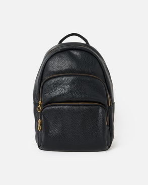 Black rucksack with three exterior zipped pockets, internal laptop slot and carry handle.
