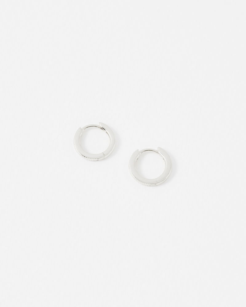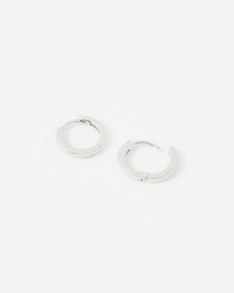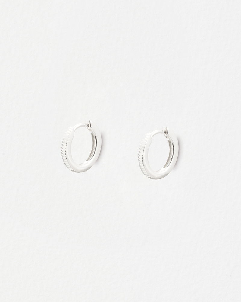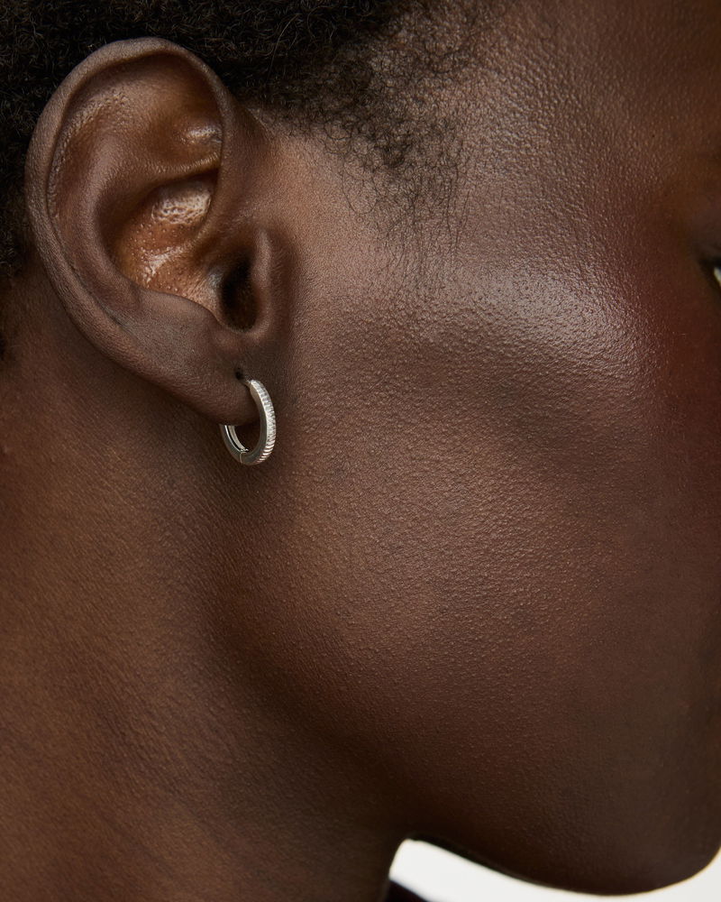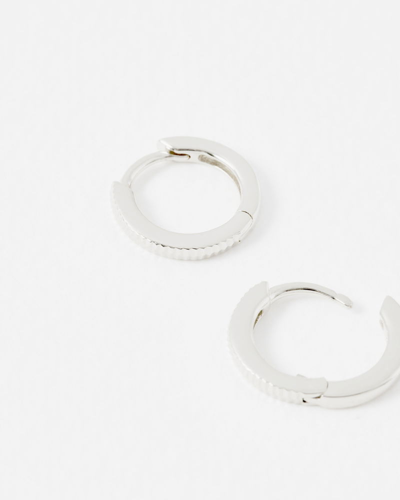 Need a pair of sterling silver hoops that work every time? Meet the Anita hoop earrings, designed with a subtle ridged texture and high shine finish. Made from sterling silver with an easy-to-wear clicker back, these huggie hoops curve just below the earlobe for comfortable everyday wear.