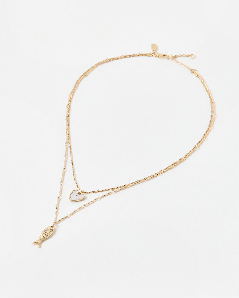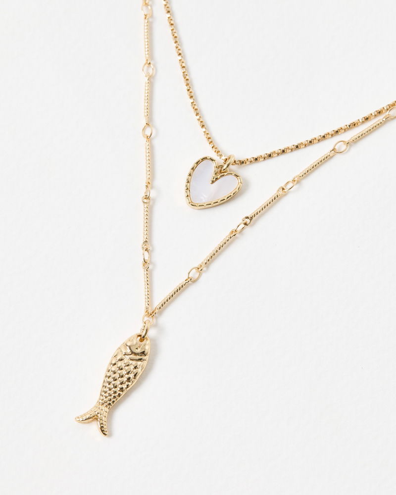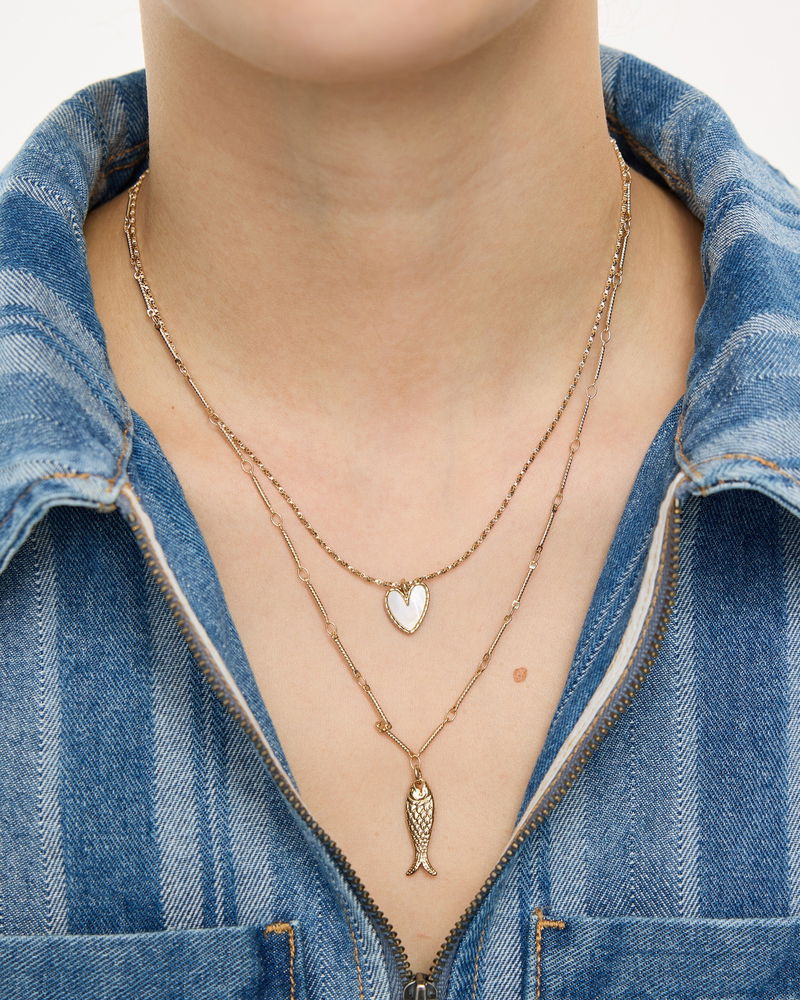 Ansel Heart & Fish Pendant Layered Chain Necklace