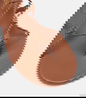 Open toe gladiator sandals in a terracotta orange hue, woven from thick leather straps with a gold buckle ankle fastening. The moulded insole and chunky flatform sole ensures all-day comfort, making it a perfect choice for long, summer days.