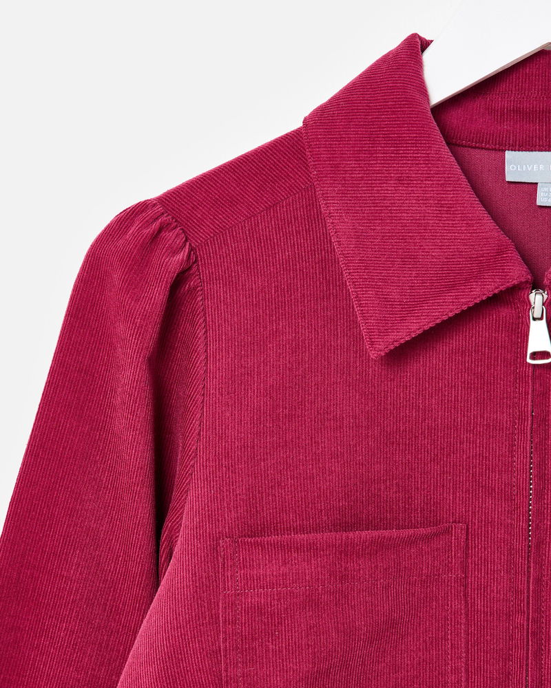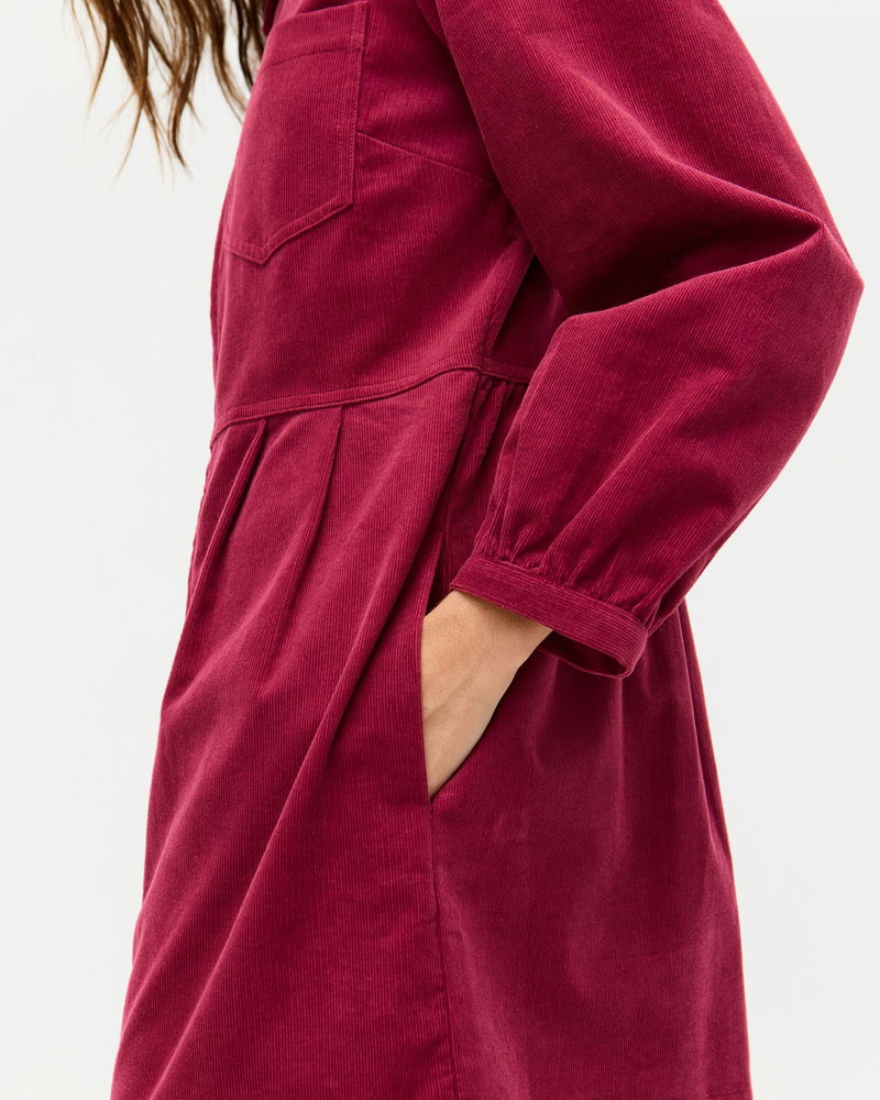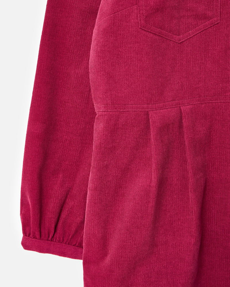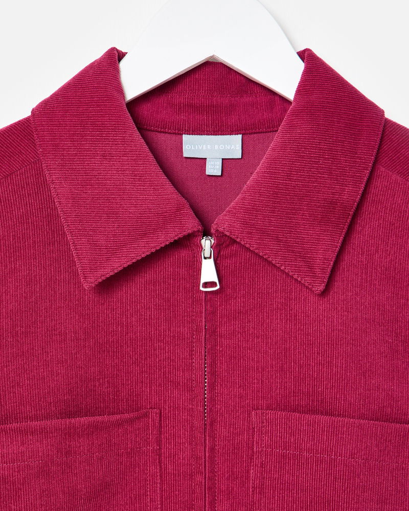 Berry Red Corduroy Zip Up Mini Shirt Dress