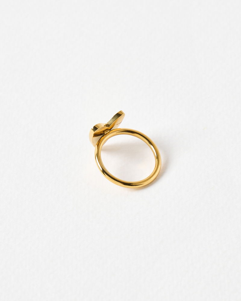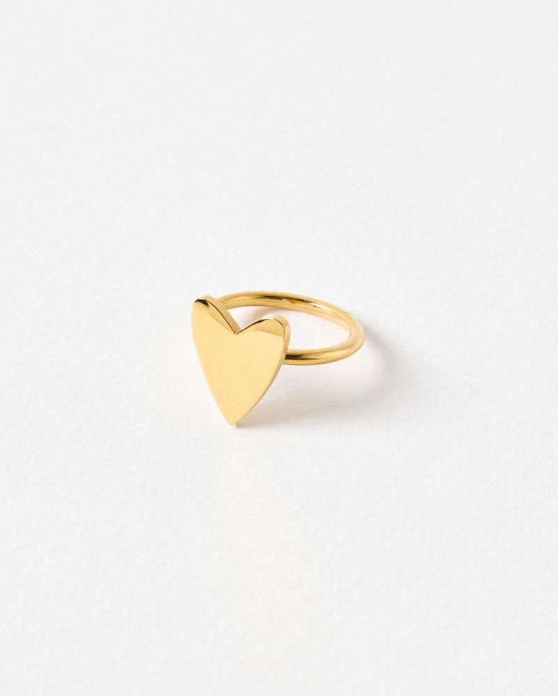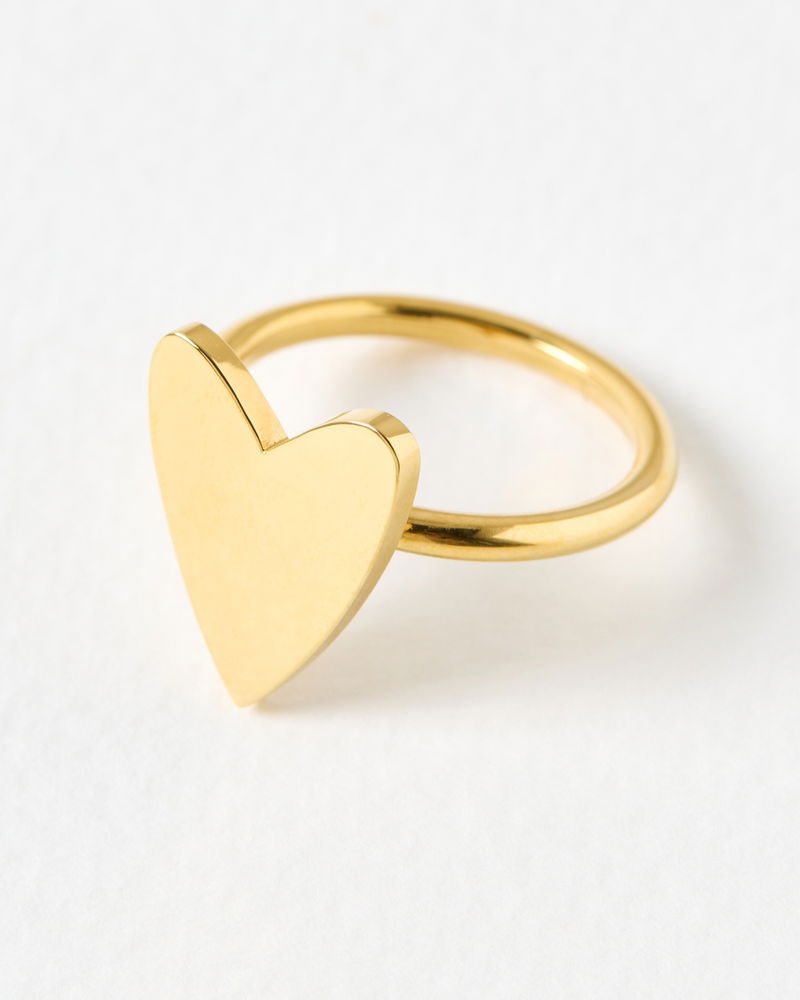 Slim, gold tone ring with a large heart charm. Made from stainless steel with a durable gold PVD coating for a lasting finish, this waterproof ring can be worn to the gym, pool and in the shower, which means you can wear it all day without having to take it off. The stainless steel base is protected with a long-lasting PVD (Physical Vapour Deposition) coating applied via a vacuum process, used to deposit a thin layer of gold onto the surface of the ring for a more durable finish that's less like to tarnish or fade. With a lobster clasp closure, wear solo as an everyday statement or pair with other heart-themed jewellery.