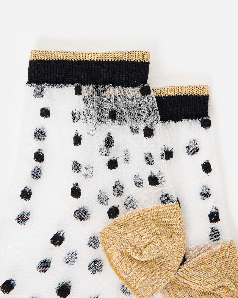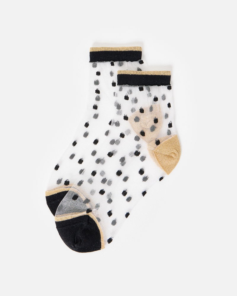Black & Gold Glitter Polka Dot Sheer Ankle Socks