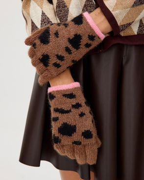 Our black leather mittens are a cold-weather essential, offering everyday warmth with a classic look. With a soft inner lining, we've accented the trim with animal print faux fur for a bold finishing touch.