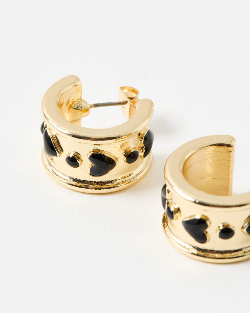 Blaine Enamel Heart Gold Tone Hoop Earrings