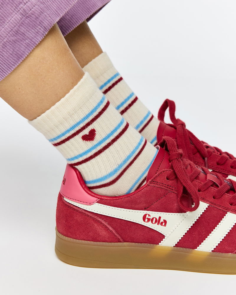 Blue & Red Striped Heart Ankle Socks