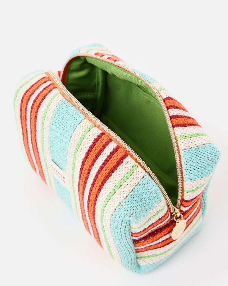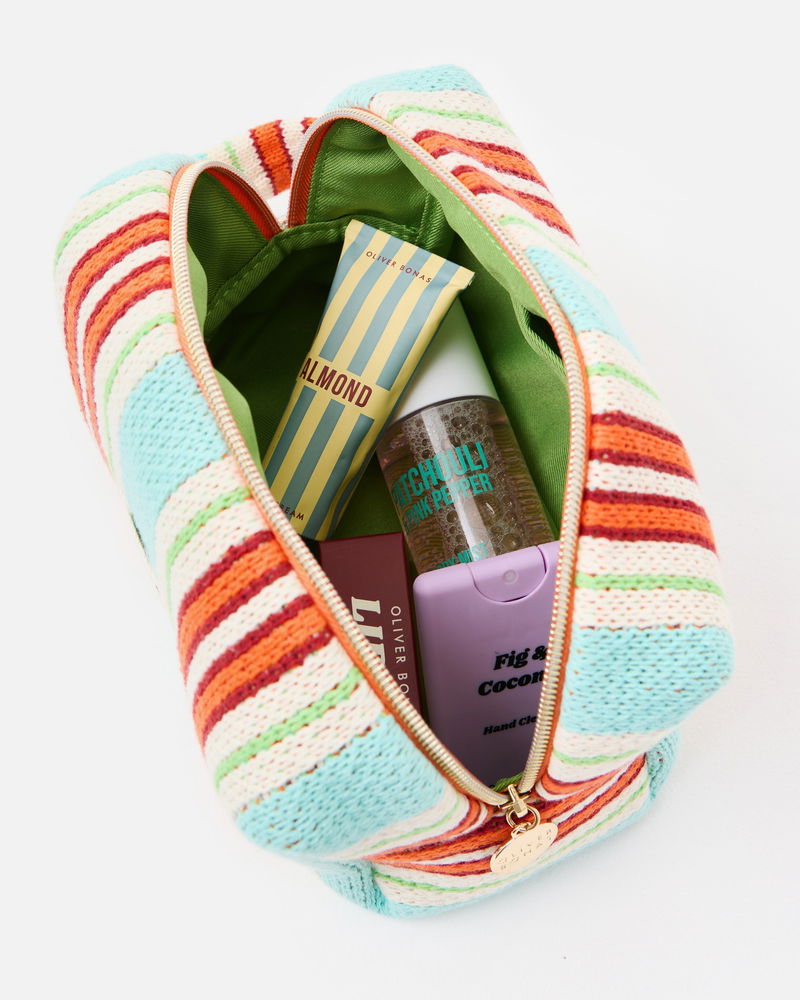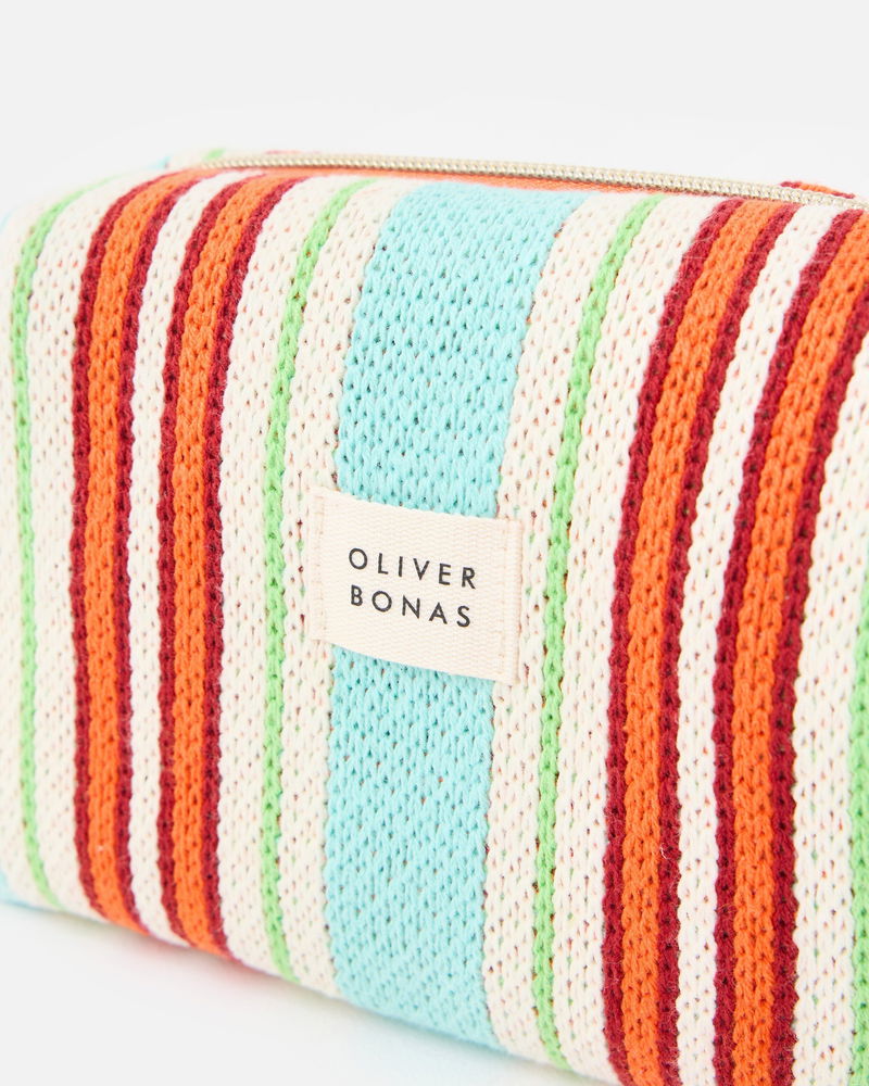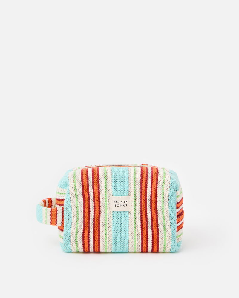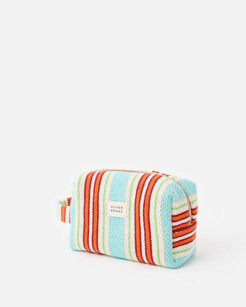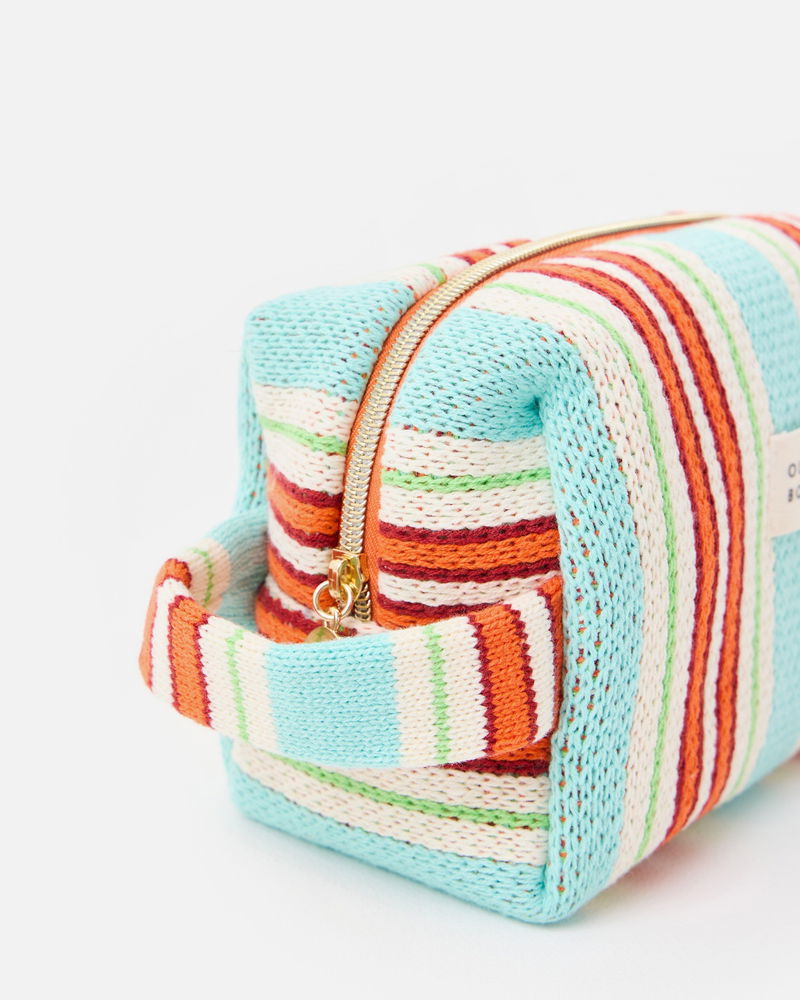 Blue & Red Striped Knitted Makeup Bag