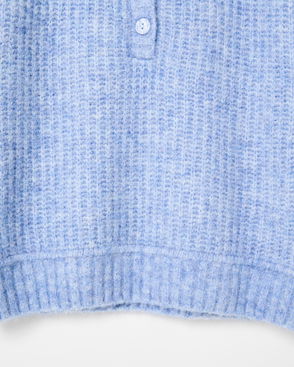 Knitted with a ribbed collared neckline and three blue buttons in a pearlescent finish down the chest, style with a pair of jeans and flats for a versatile everyday look.