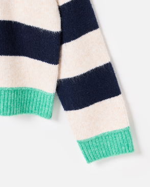 Add a pop of colour to your cold-weather wardrobe with our tonal blue striped jumper.