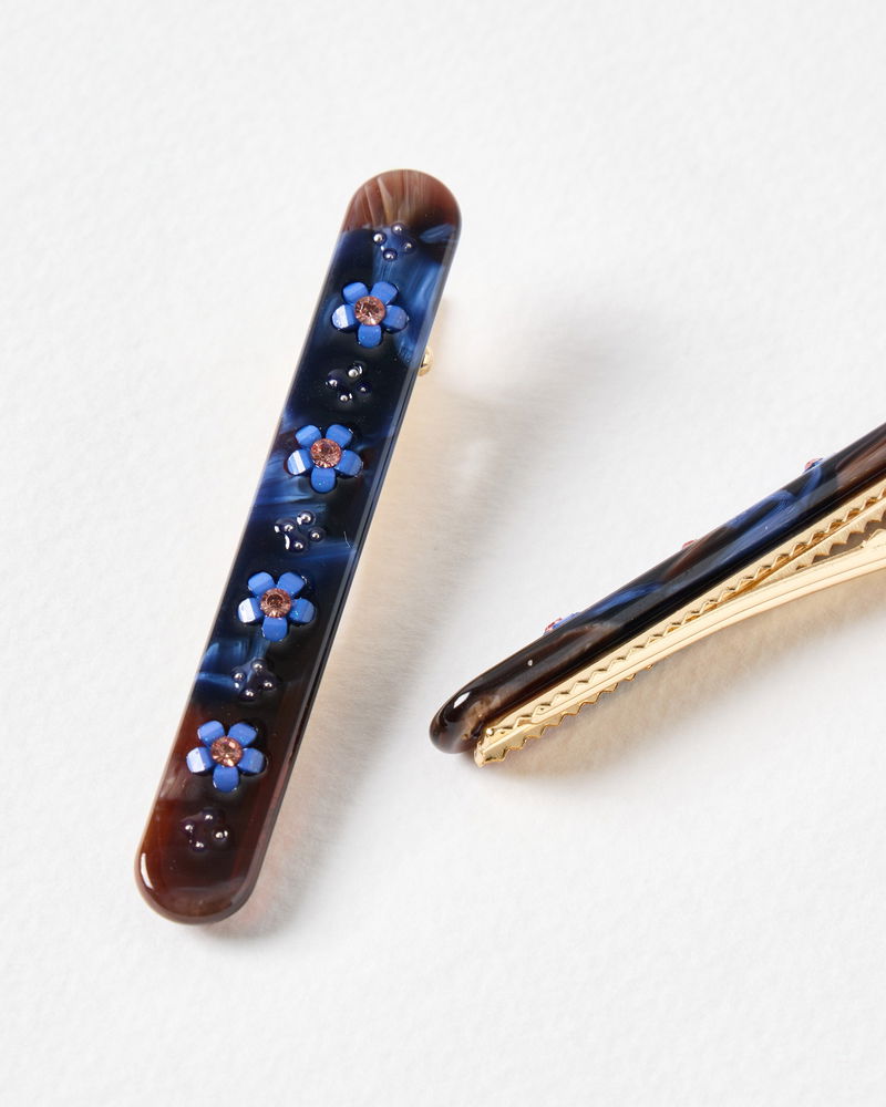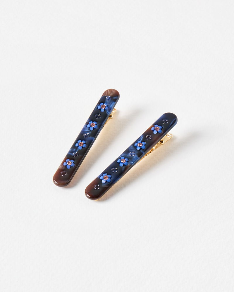 Brigitte Blue Resin Flower Hair Clips Set Of Two