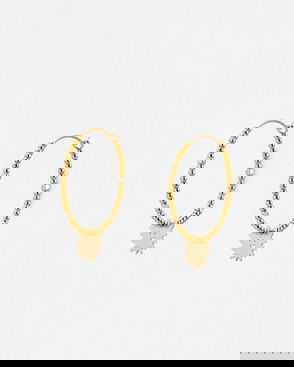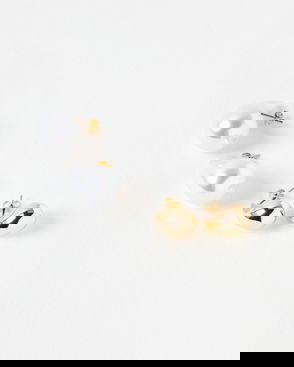 Designed with a larger hoop shape and silver tone finish, we've added small faux pearls and a smiley sun pendant that hangs at the base to these hoop earrings.