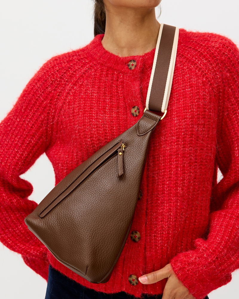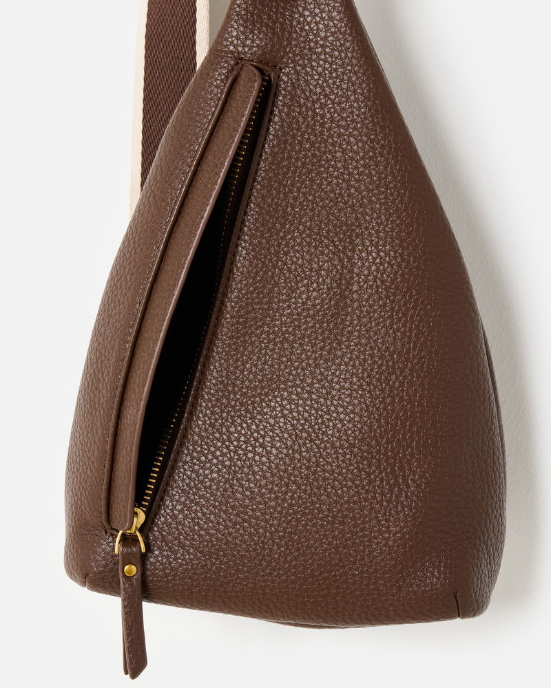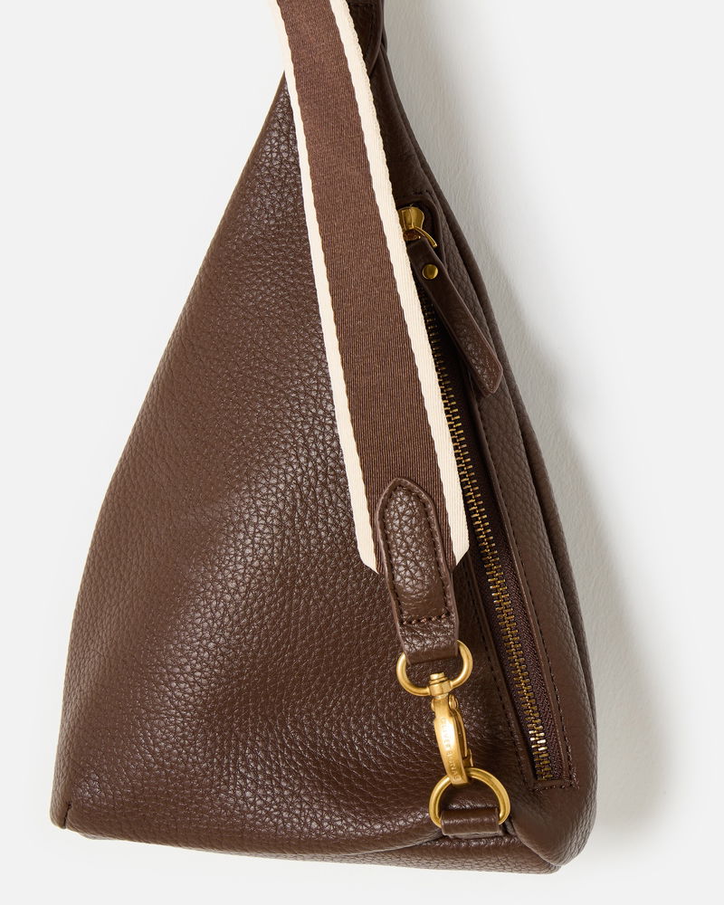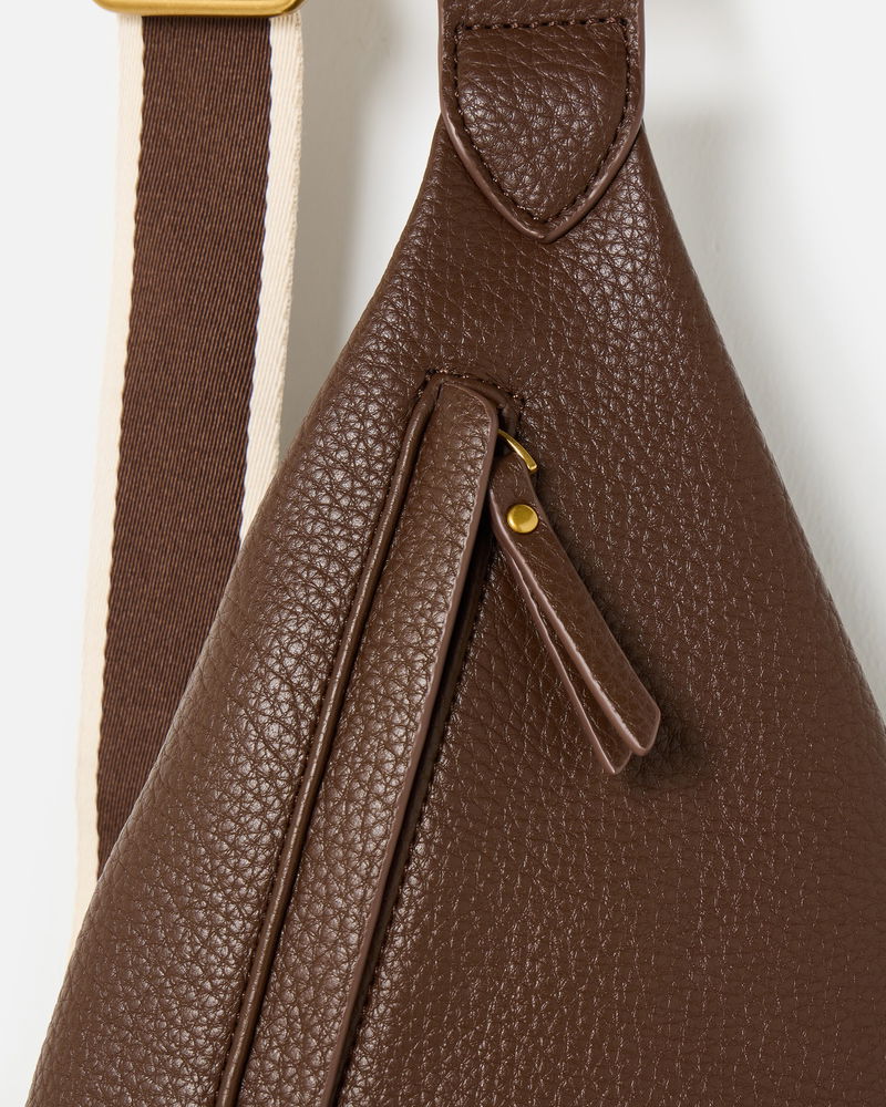 Combine everyday function with clean, simple style with our triangular shaped chocolate brown belt bag.