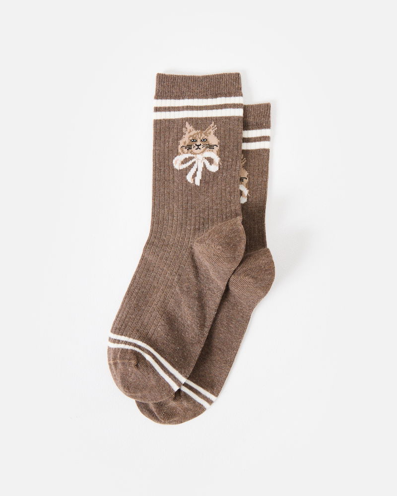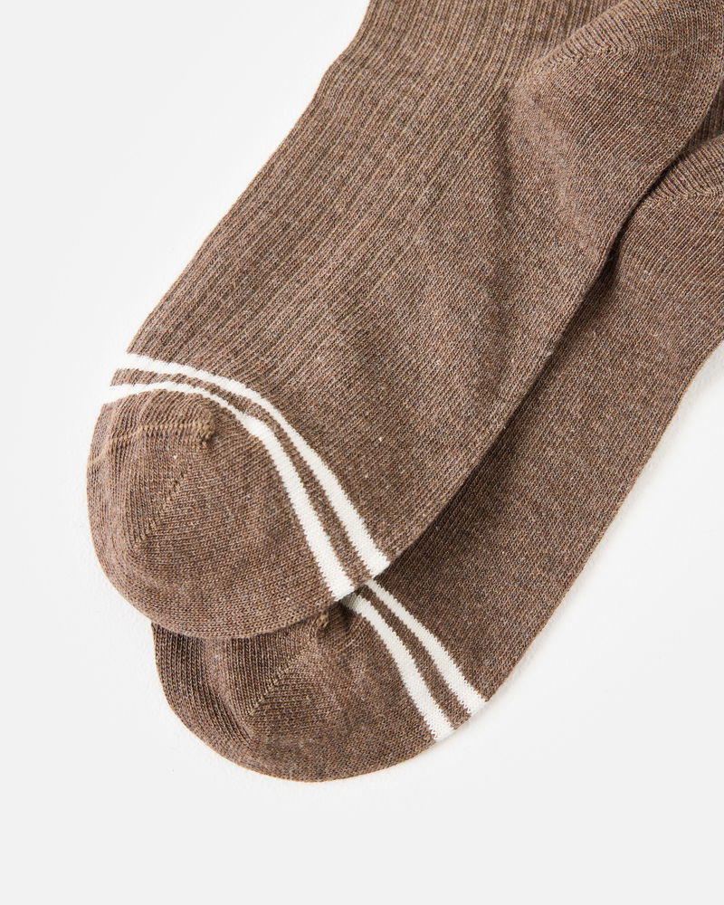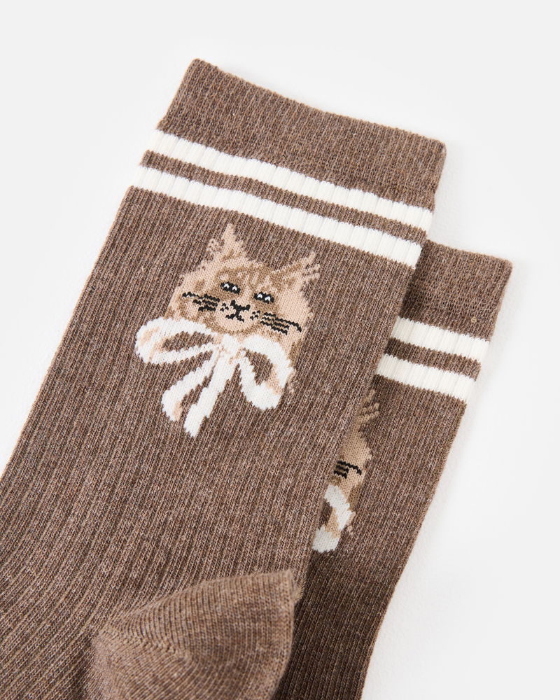 Brown Marl Cat Ribbed Sporty Ankle Socks