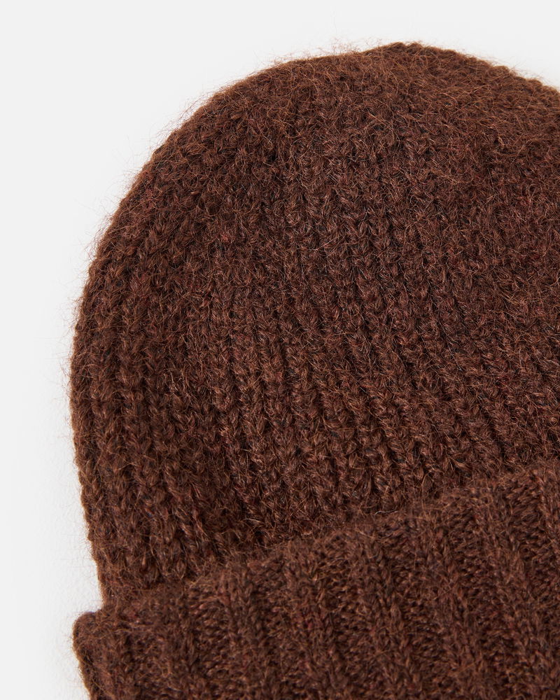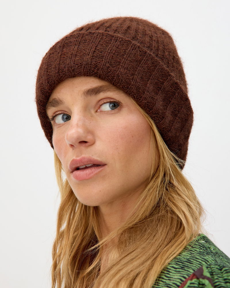 Chocolate Brown Fluffy Ribbed Knitted Beanie Hat