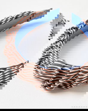 Add a floral touch to your hairstyle with our wavy gold headband embellished with green beads and pink and orange beaded flowers.