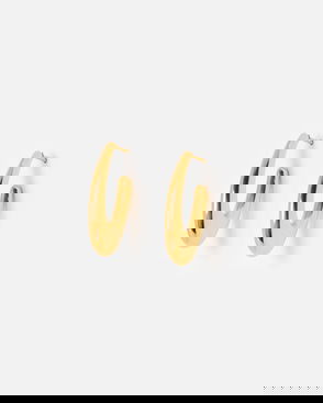 With a high shine finish, these gold tone statement earrings are set in a square profile and secured to a stud back. Featuring a subtle outward curve, these gold statement earrings have a contemporary feel, perfect for workwear and evening outfits.