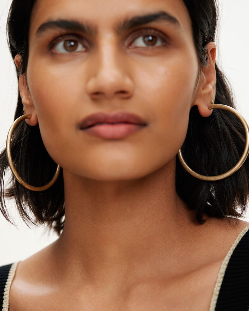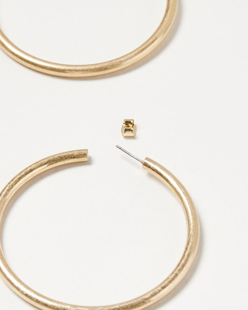 A bold statement piece, these chunky hoop earrings feature a gold-toned finish, completed with stud backs.