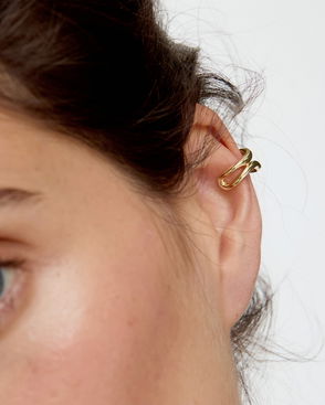 Slim gold plated ear cuff with small clear stones inlaid all the way round.