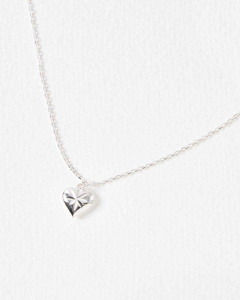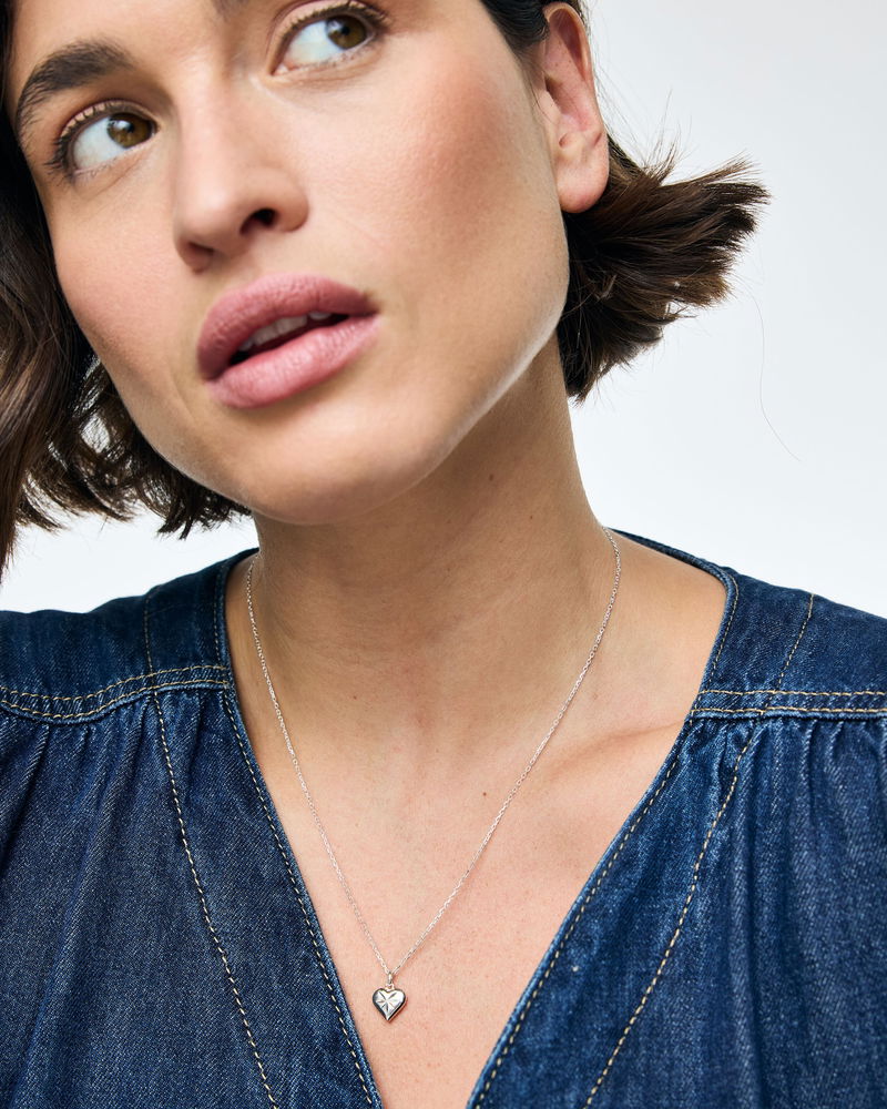 Cora Engraved Heart Charm Silver Pendant Necklace