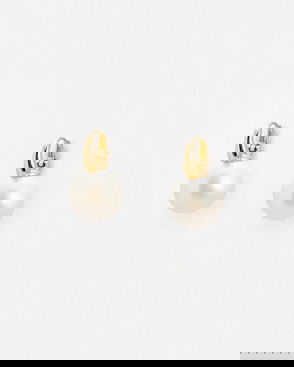 Large gold-toned hoop earrings in a slim, shiny profile with a stud and butterfly back. Features multiple faux-pearl flower charms hung from the hoop, secured with a bobbin finish at the back. Style with a pearl necklace and bracelet for a smart, occasion-ready look.