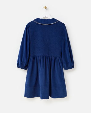 Coral pink corduroy mini dress with utility-style pockets, short sleeves and silver popper buttons down the front.
