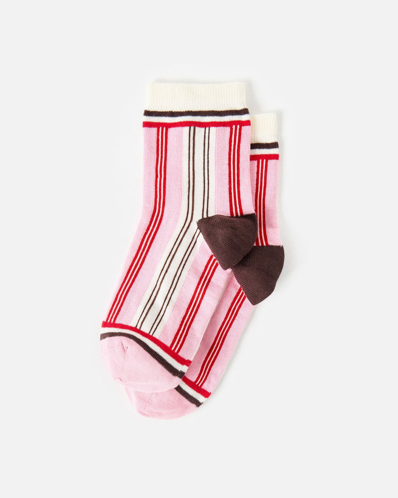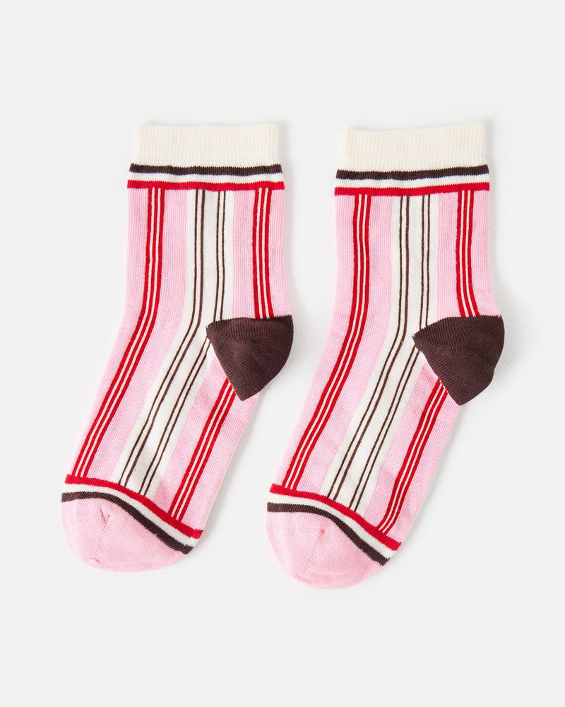 Cream & Pink Striped Ankle Socks