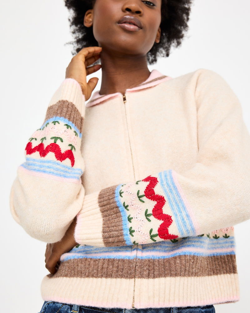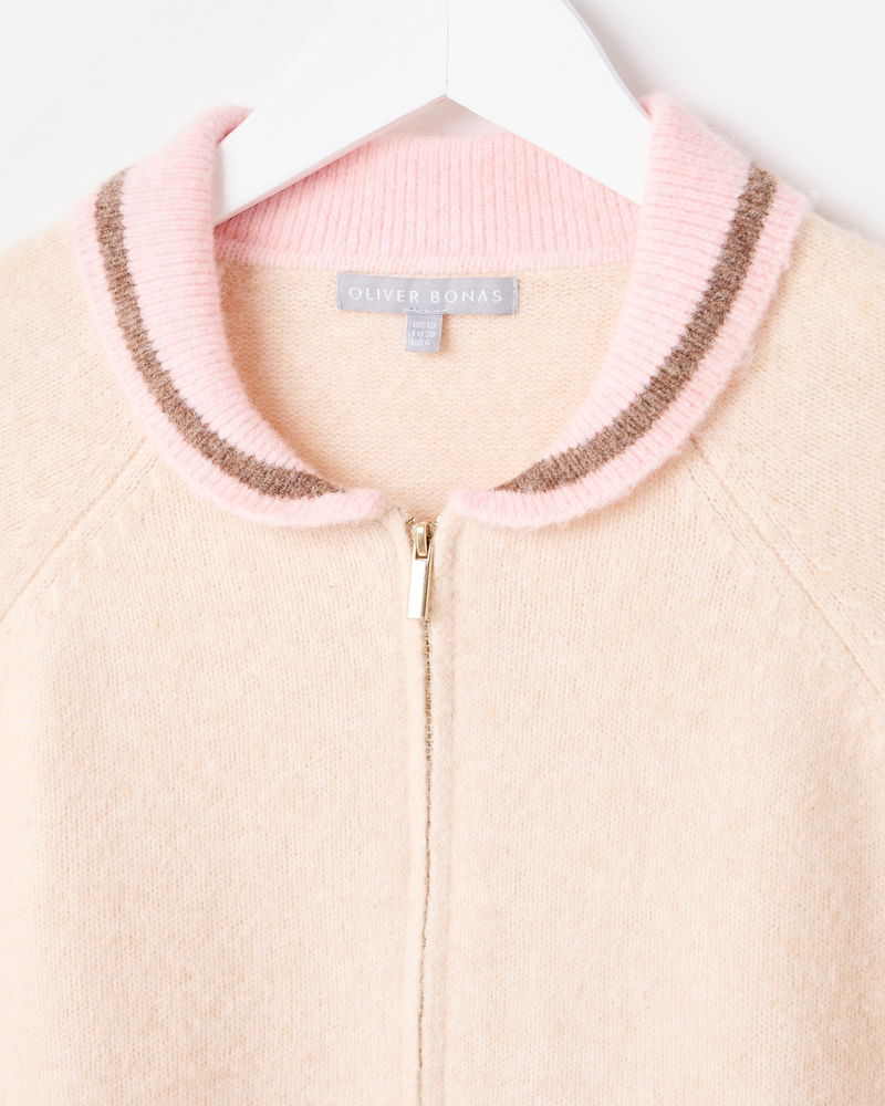 Cream Tulip Zip Up Collared Knitted Cardigan