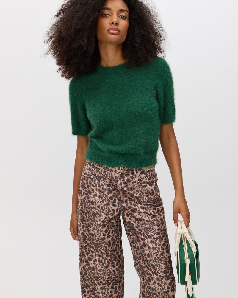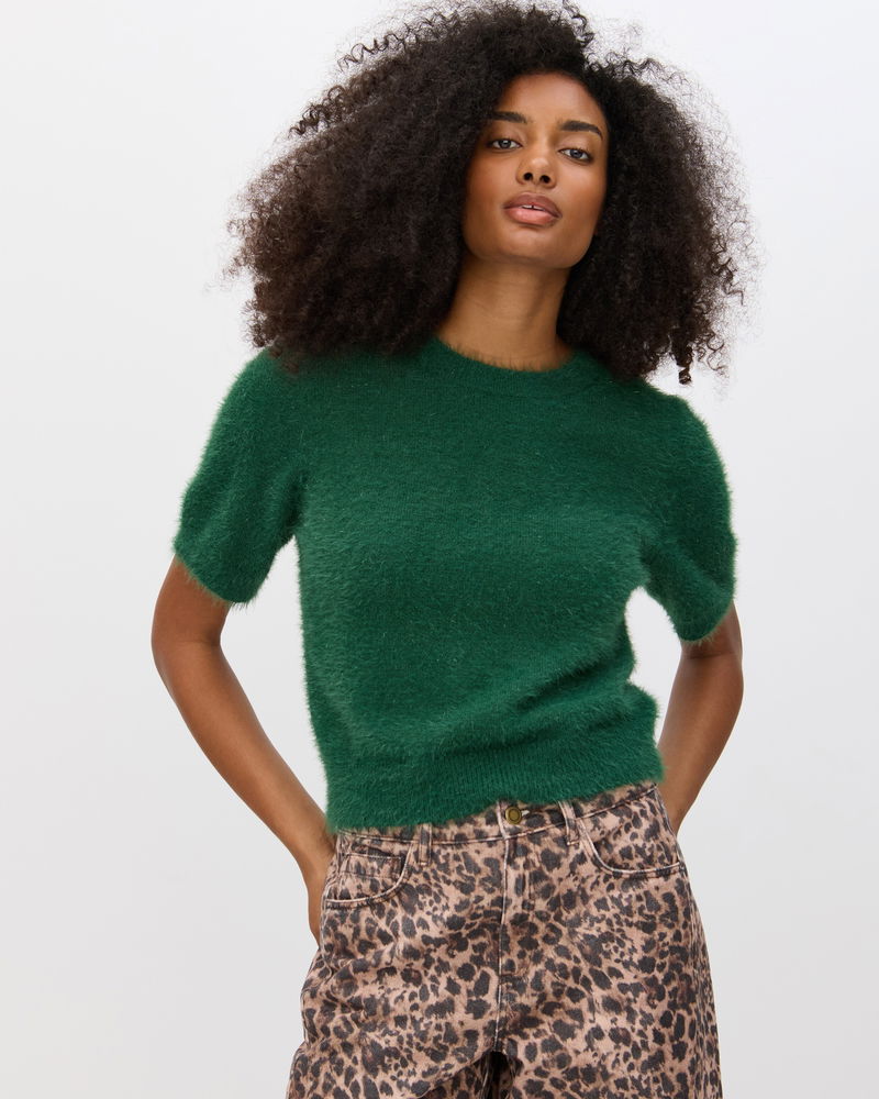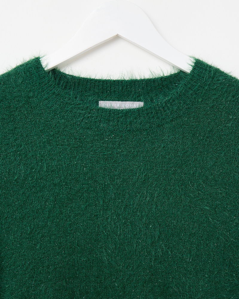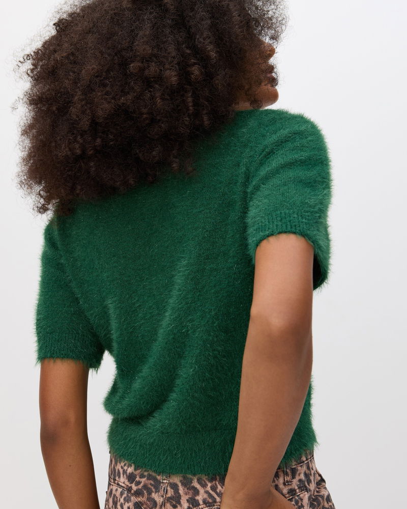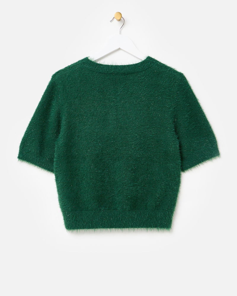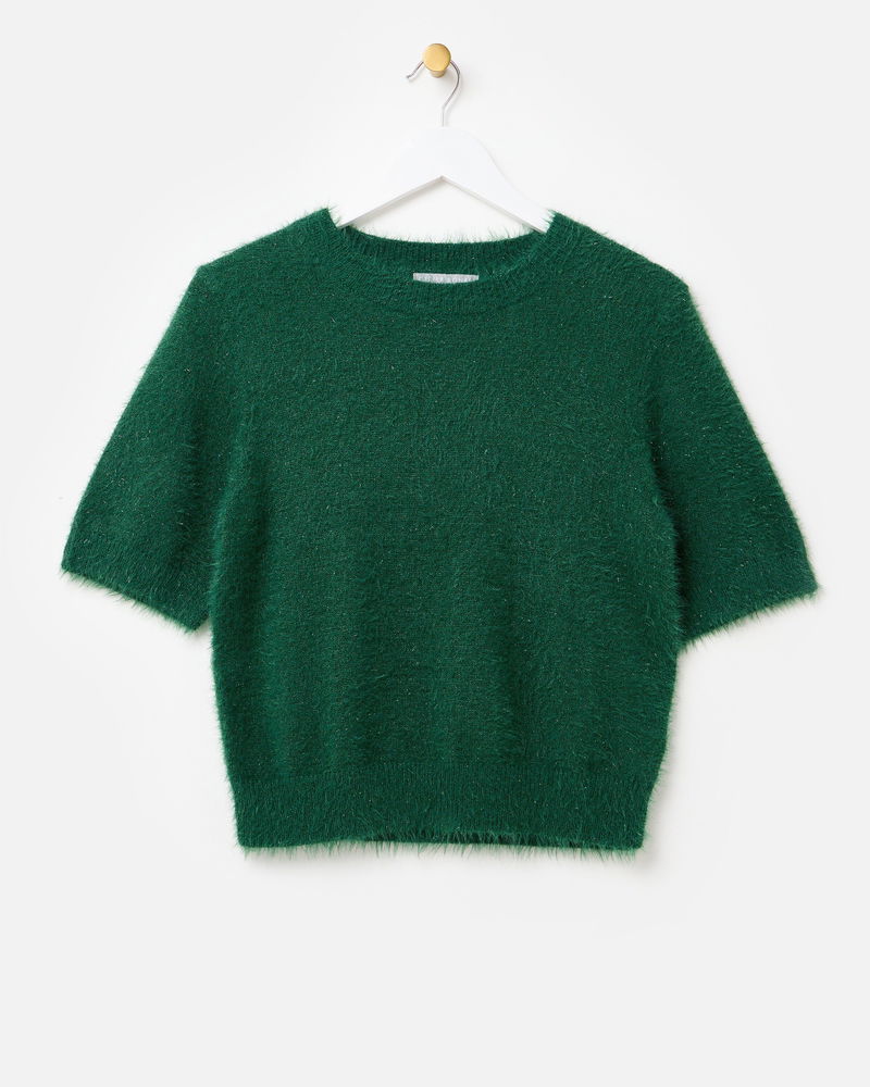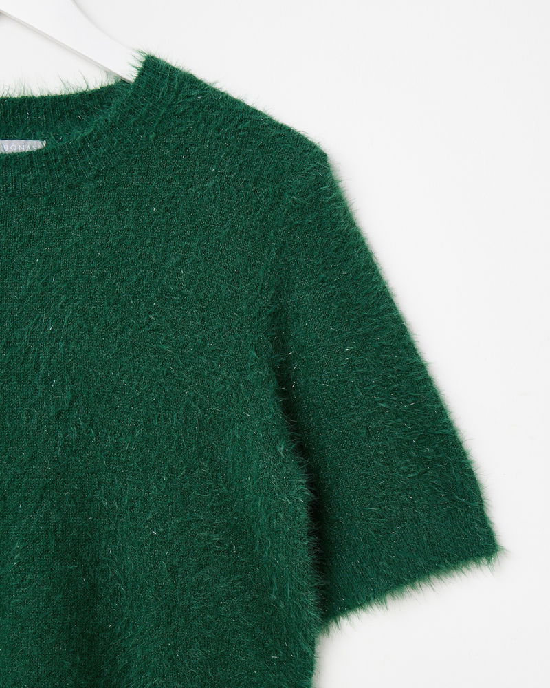 Dark Green Sparkle Eyelash Knitted T-Shirt