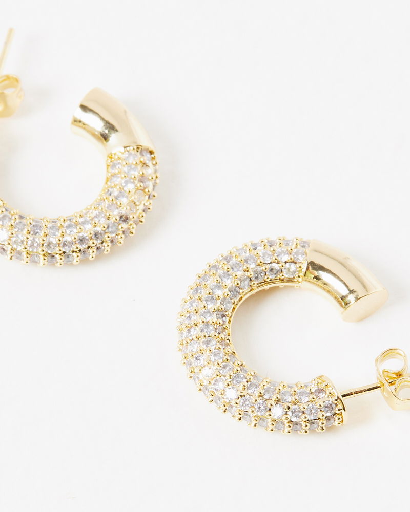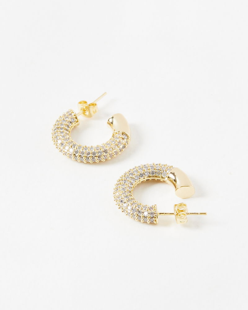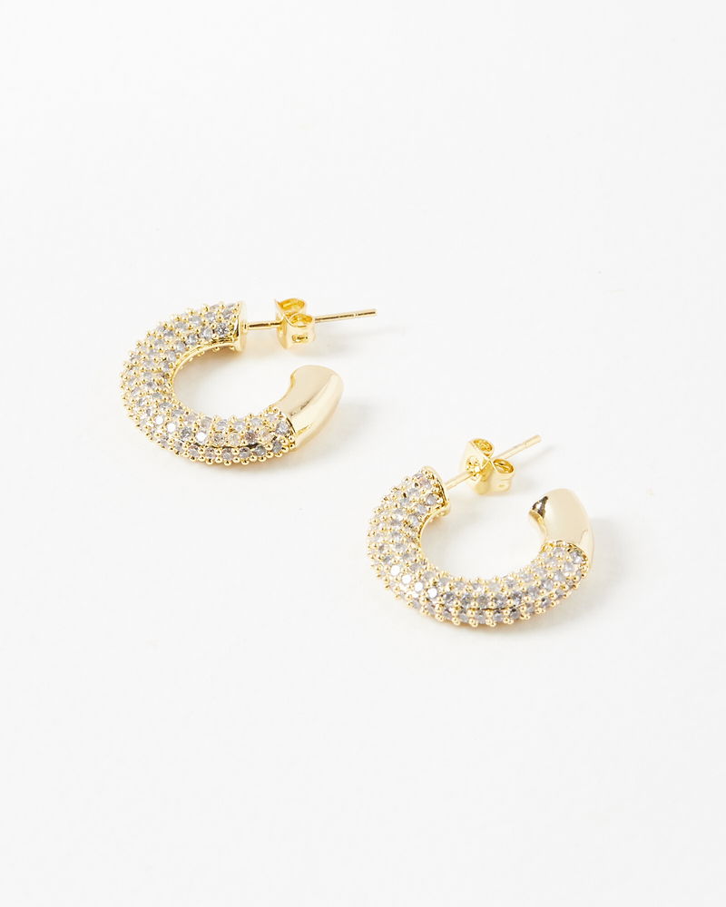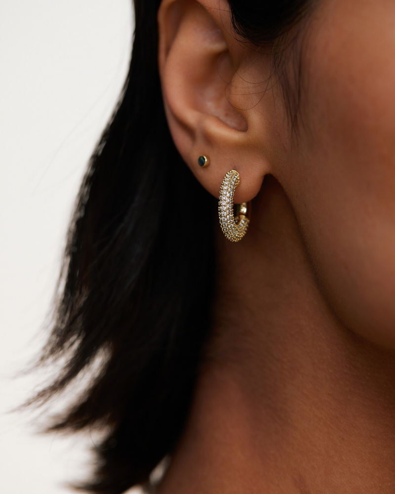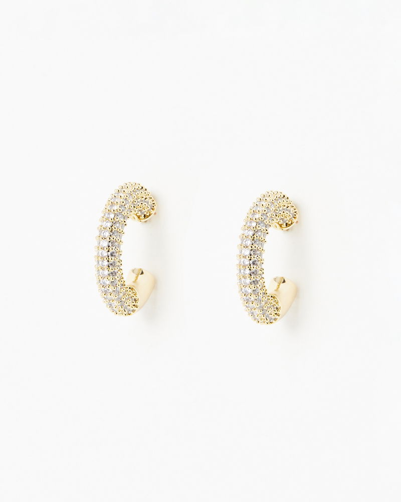 Pairing gold and silver finishes in a textured surface, these hoop earrings have a chunky, rounded profile.