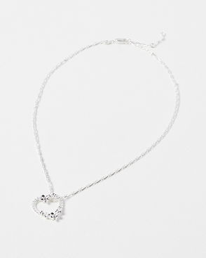 Featuring a delicate chain in a silver finish, this pendant necklace suspends a molten textured disc with small gem details.